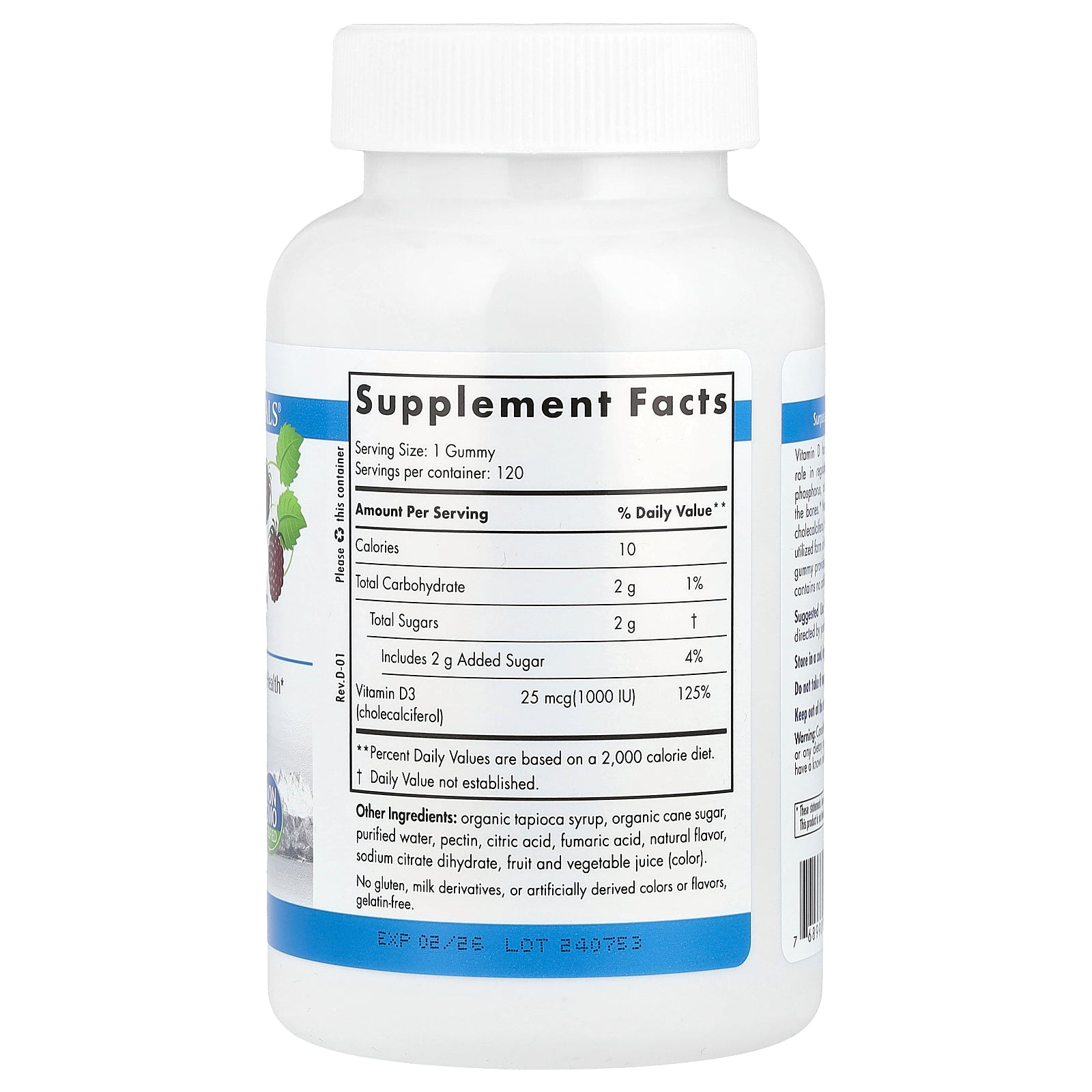 Vitamin D has long been known for its important role in regulating the body's levels of calcium and phosphorus, as well as supporting mineralization in the bones. Nordic Naturals Vitamin D3 Gummies are cholecalciferol, the natural, most easily absorbed and utilized form of vitamin D. Each great-tasting, chewable gummy provides 1000 IU (25 mcg) of Vitamin D3, and contains no artificially derived colors or flavors.