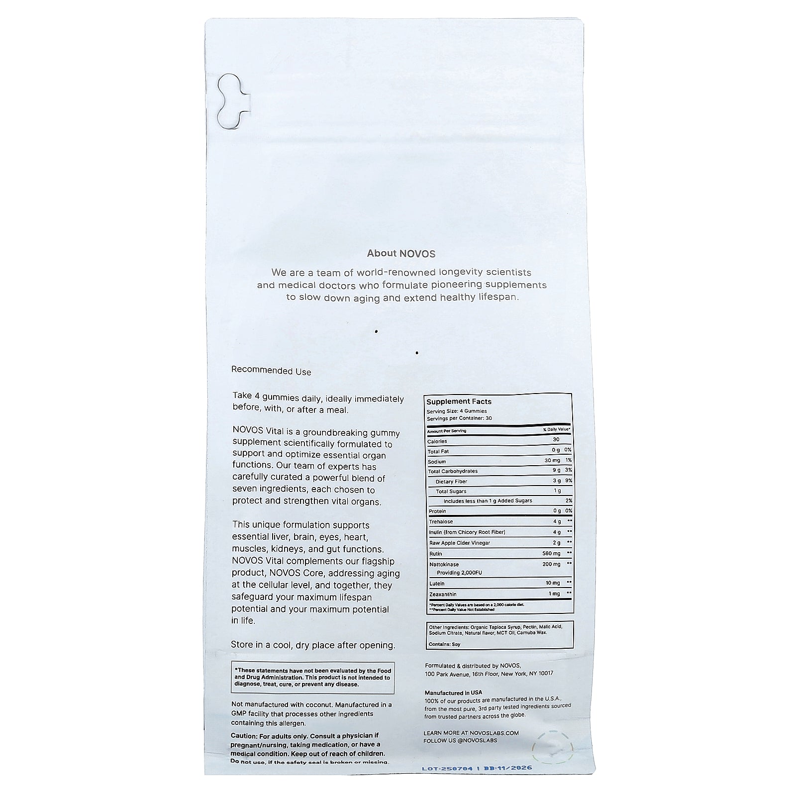 This unique formulation supports essential liver, brain, eyes, heart, muscles, kidneys, and gut functions. NOVOS Vital complements our flagship product, NOVOS Core, addressing aging at the cellular level, and together, they safeguard your maximum lifespan potential and your maximum potential in life.