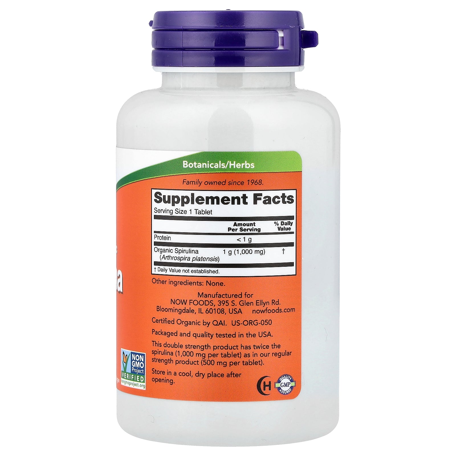 This double strength product has twice the spirulina (1,000 mg per tablet) as in our regular strength product (500 mg per tablet).
