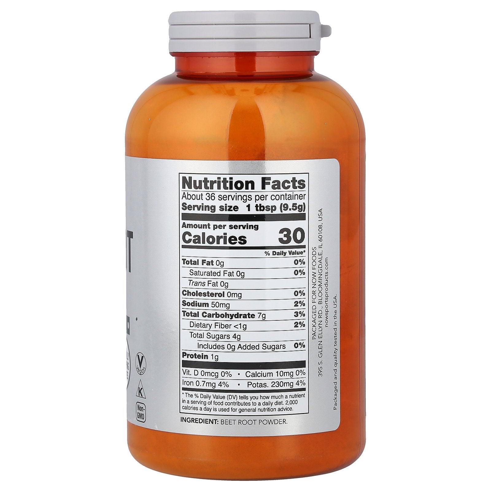 NOW® Sports Beet Root Powder is a pure derivative from non-GMO beets that's dried and not extracted. Beets are a true superfood and are naturally abundant in a variety of nutrients including nitrates. Each tablespoon serving of NOW® Sports Beet Root Powder is equivalent to 2.5 whole beets.