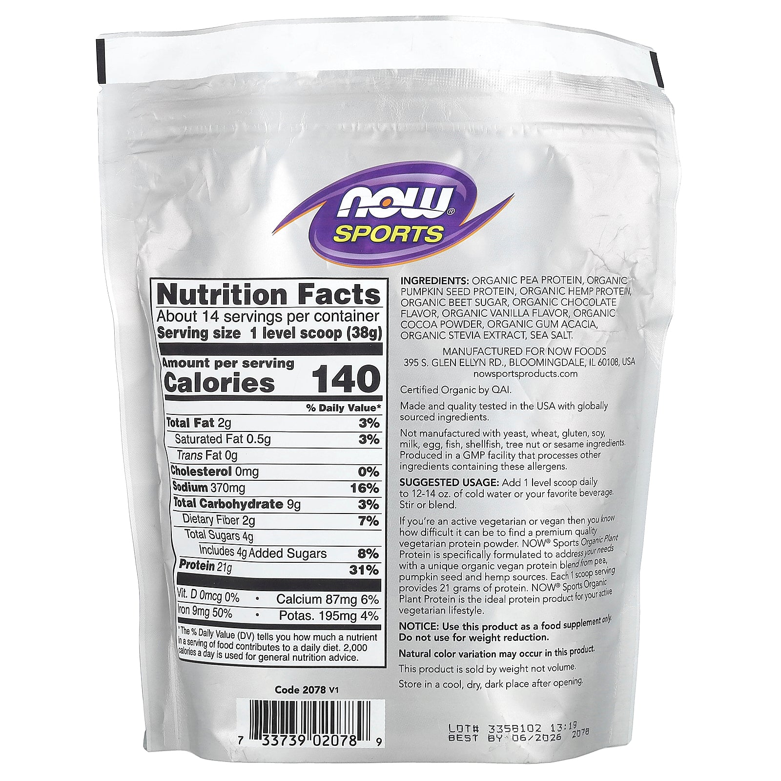 If you're an active vegetarian or vegan then you know how difficult it can be to find a premium quality vegetarian protein powder. NOW® Sports Organic Plant Protein is specifically formulated to address your needs with a unique organic vegan protein blend from pea, pumpkin seed and hemp sources. Each 1 scoop serving provides 21 grams of protein. NOW® Sports Organic Plant Protein is the ideal protein product for your active vegetarian lifestyle.