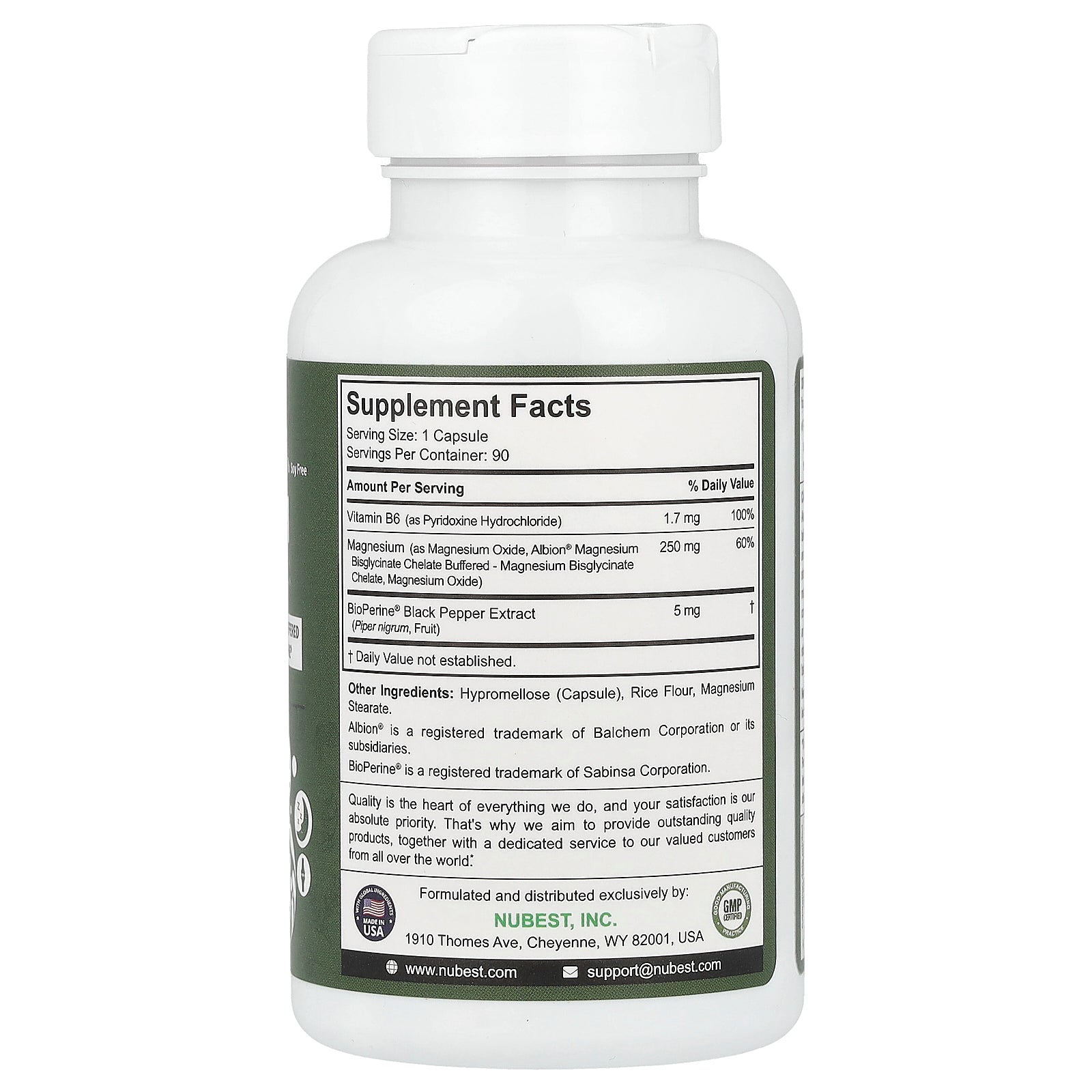 Albion® magnesium bisglycinate chelate buffered & magnesium oxide + vitamin B6 + BioPerine®.