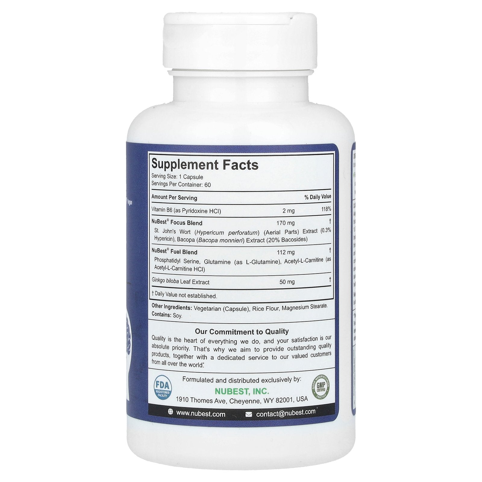 NuBest® Focus Blend St. John's Wort (Hypericum Perforatum) (Aerial Parts) Extract (0.3% Hypericin), Bacopa (Bacopa Monnieri) Extract (20% Bacosides) |