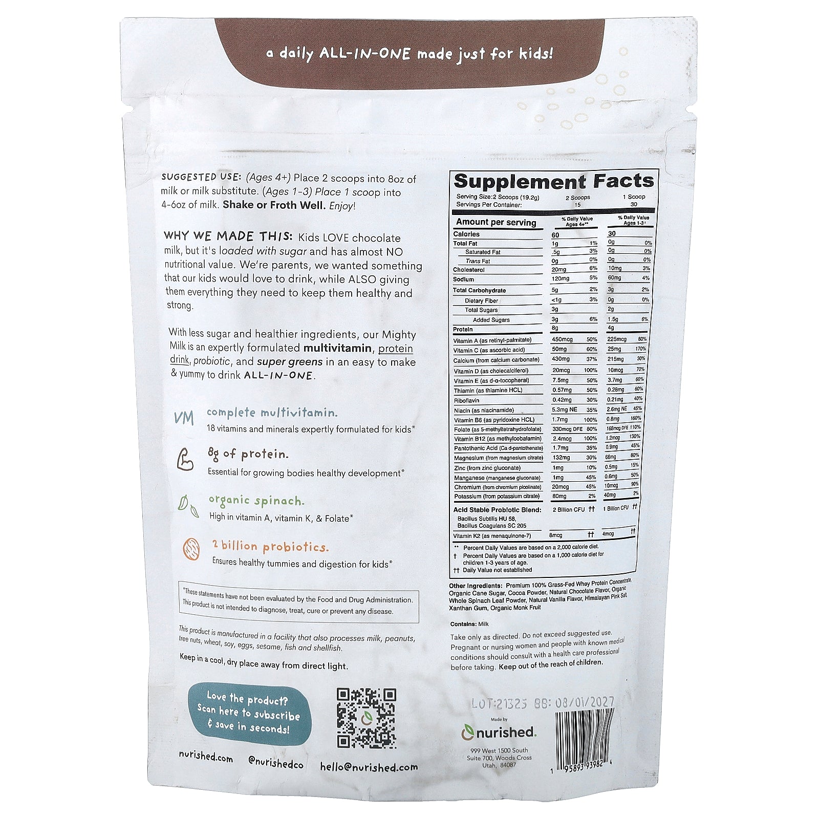 Kids Mighty Milk Blend: Premium 100% Grass-Fed Whey Protein Concentrate (non-GMO, rBGH Free), Organic Whole Spinach Leaf Powder |