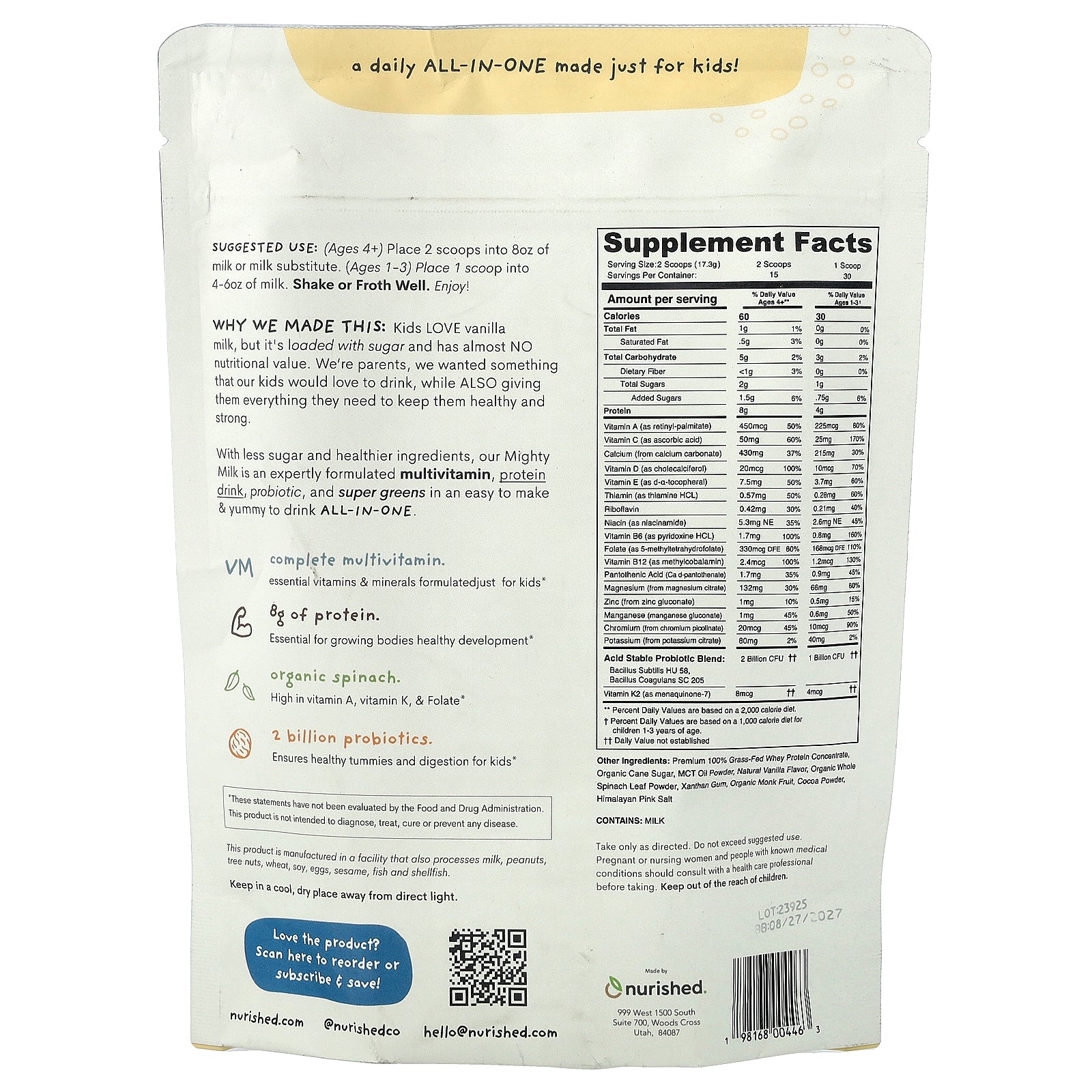 Why We Made This: Kids LOVE Vanilla milk, but it's loaded with sugar and has almost NO nutritional value. We're parents, we wanted something that our kids would love to drink, while ALSO giving them everything they need to keep them healthy and strong.
