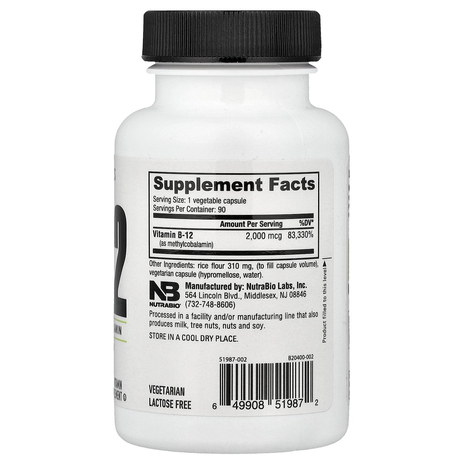 | Vitamin B-12 (as methylcobalamin) | 2,000 mcg | 83,330% |