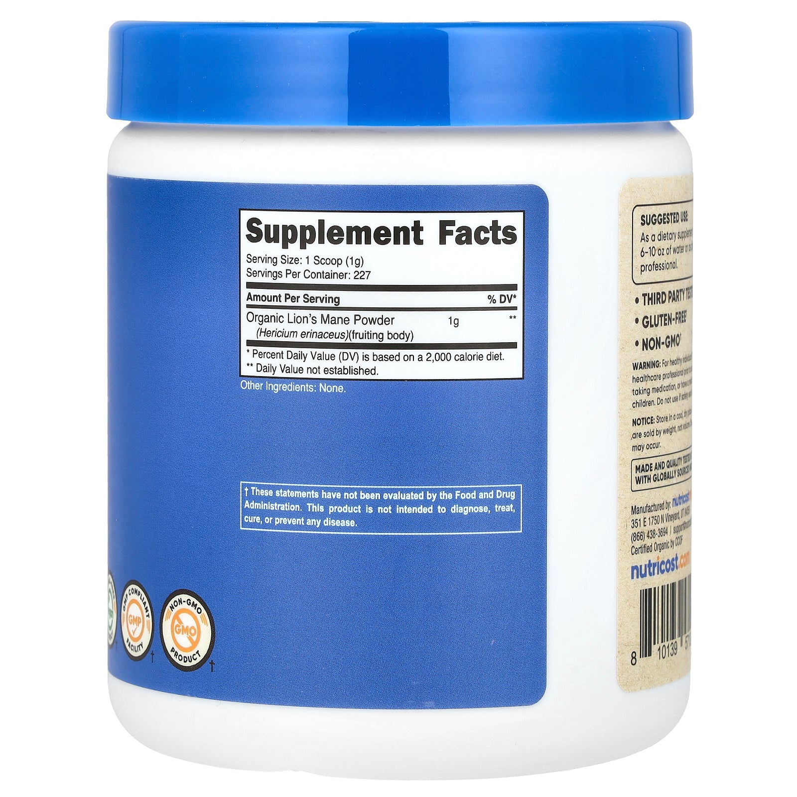 Nutricost, 100% Organic Lion's Mane Mushroom, Unflavored , 8.1 oz (227 g)