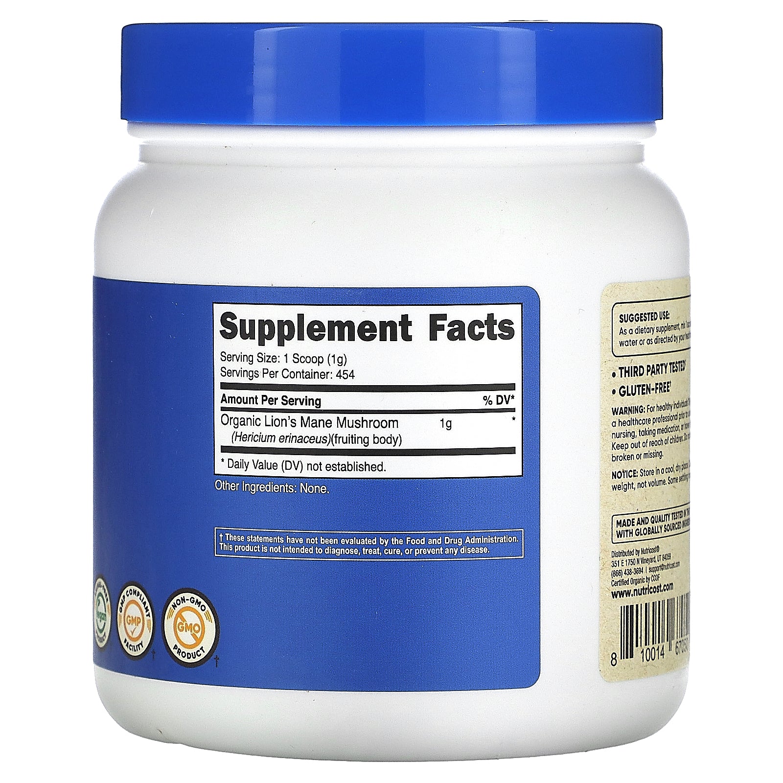 Nutricost, Organic Lion's Mane Mushroom, Unflavored, 1 lb (454 g)
