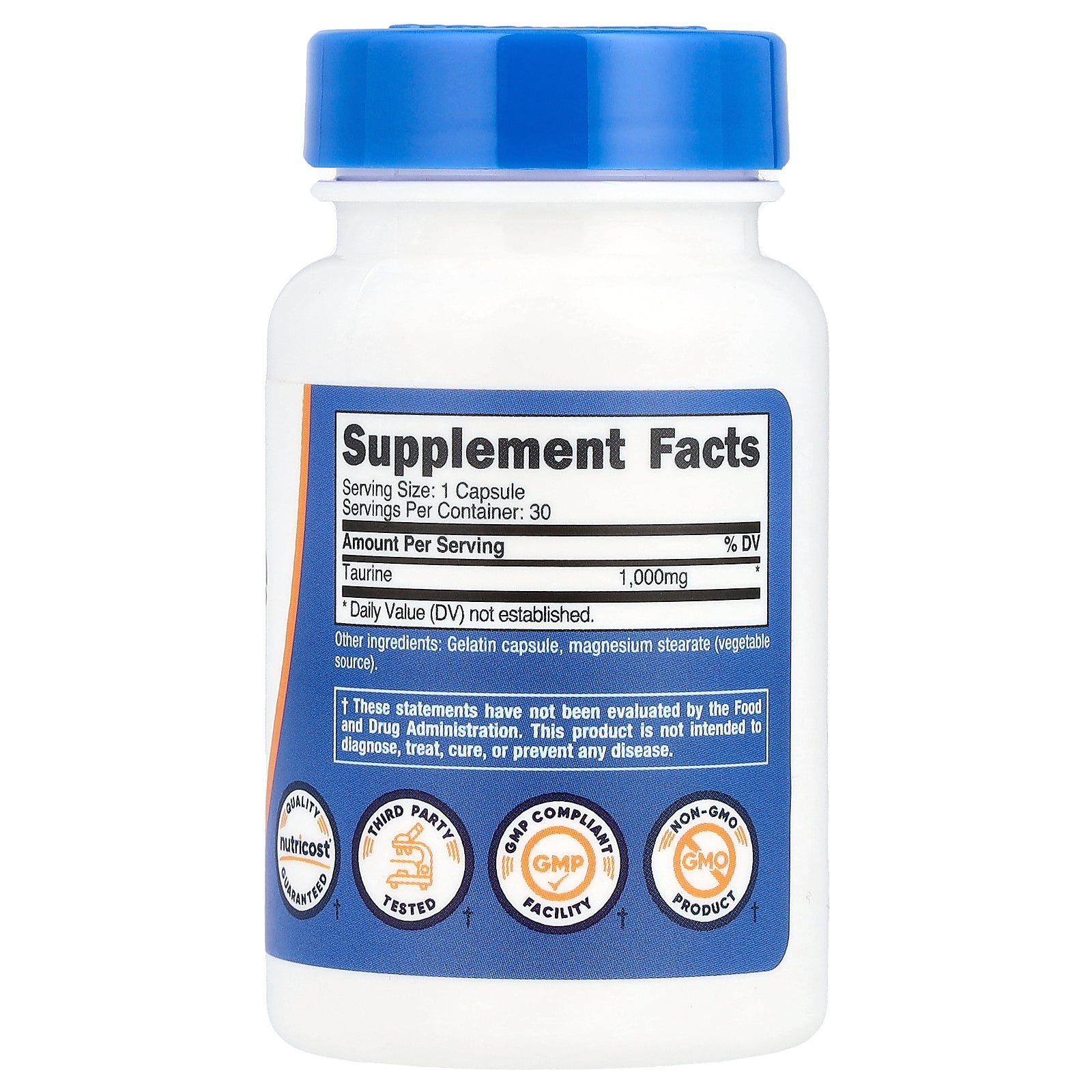 Nutricost, Taurine, 1,000 mg, 30 Capsules