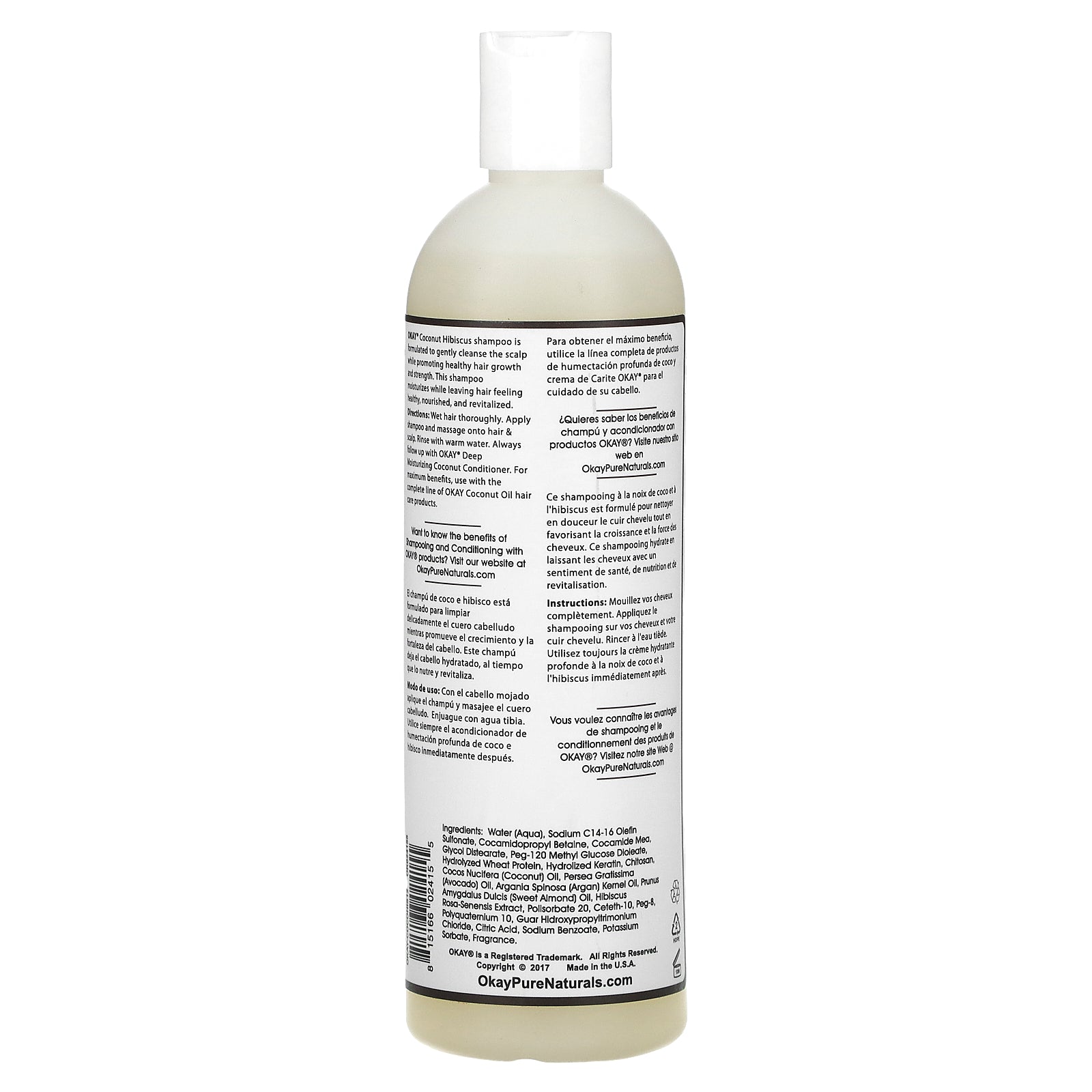 OKAY® Coconut Hibiscus shampoo is formulated to gently cleanse the scalp while promoting healthy hair growth and strength. This shampoo moisturizes while leaving hair feeling healthy, nourished, and revitalized.