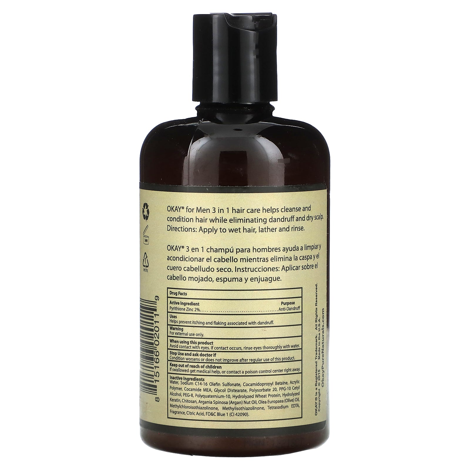 OKAY® for Men 3 in 1 hair care helps cleanse and condition hair while eliminating dandruff and dry scalp.