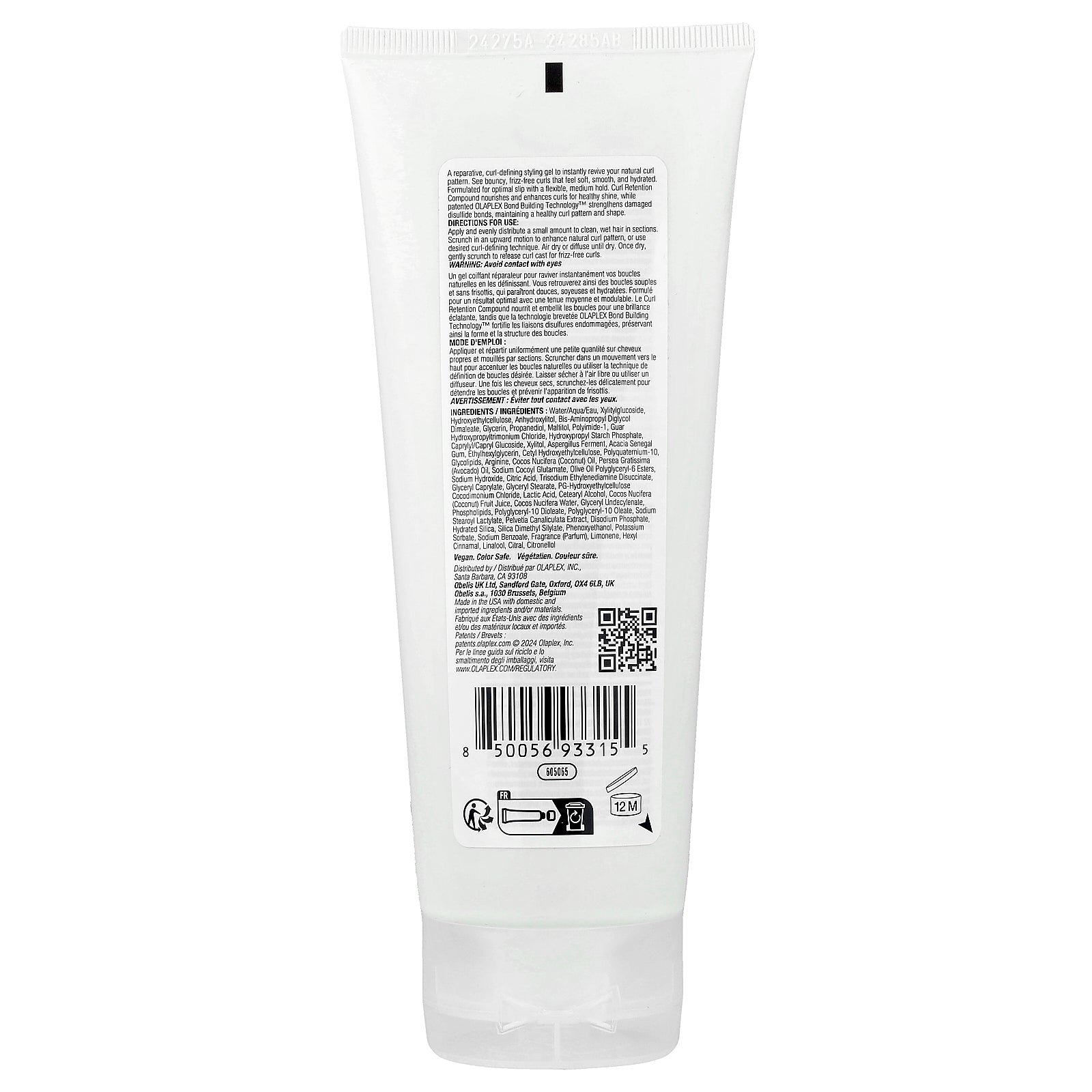 A reparative, curl-defining styling gel to instantly revive your natural curl pattern. See bouncy, frizz-free curls that feel soft, smooth, and hydrated. Formulated for optimal slip with a flexible, medium hold. Curl Retention Compound nourishes and enhances curls for healthy shine, while patented OLAPLEX Bond Building Technology™ strengthens damaged disulfide bonds, maintaining a healthy curl pattern and shape.