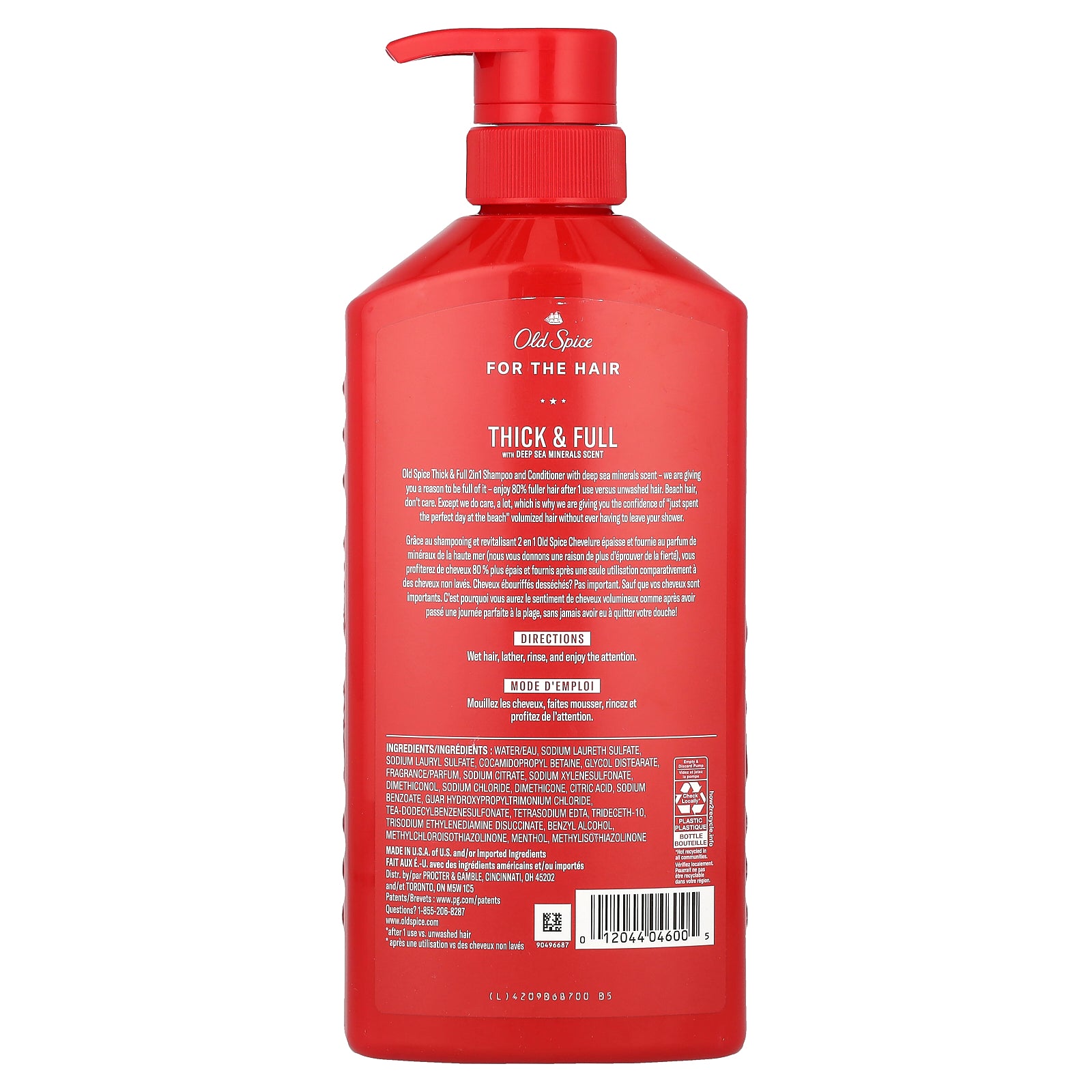 Old Spice Thick & Full 2in1 Shampoo and Conditioner with deep sea minerals scent - we are giving you a reason to be full of it - enjoy 80% fuller hair after 1 use versus unwashed hair. Beach hair, don't care. Except we do care, a lot, which is why we are giving you the confidence of "just spent the perfect day at the beach" volumized hair without ever having to leave your shower.