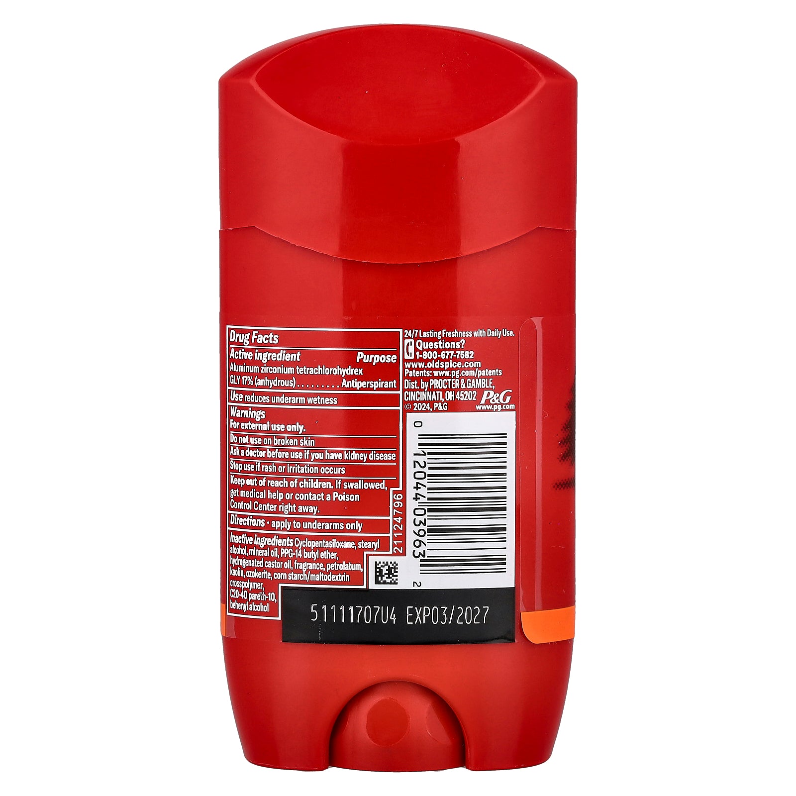 Inactive Ingredients: Cyclopentasiloxane, stearyl alcohol, mineral oil, PPG-14 butyl ether, hydrogenated castor oil, fragrance, petrolatum, kaolin, ozokerite, corn starch/maltodextrin crosspolymer, C20-40 pareth-10, behenyl alcohol. |