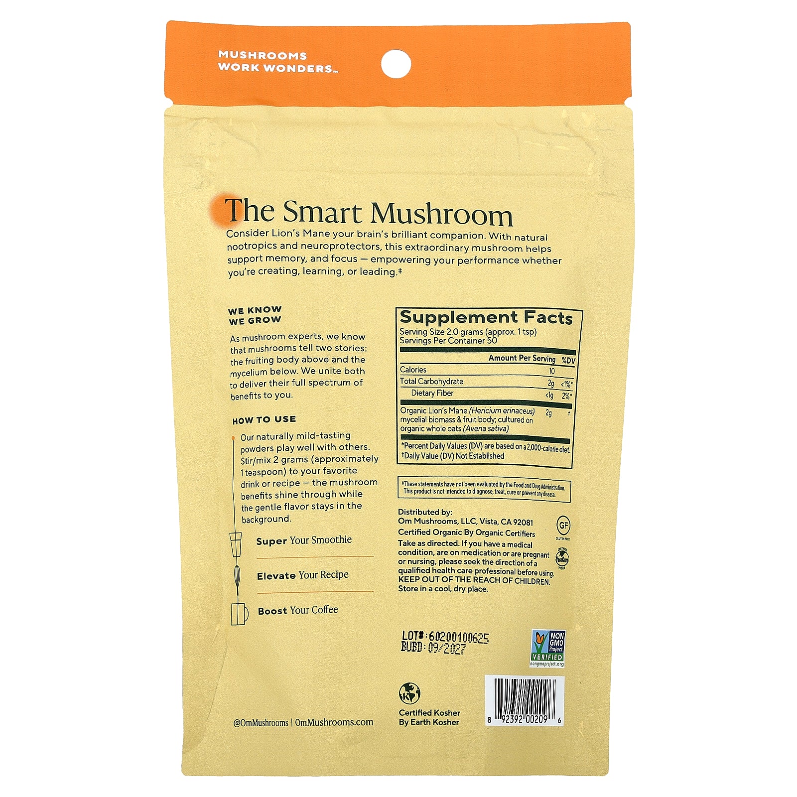 | Organic Lion's Mane (Hericium erinaceus) Mycelial Biomass and Fruit Body; Cultured on Organic Whole Oats (Avena sativa) | 2 g | † |