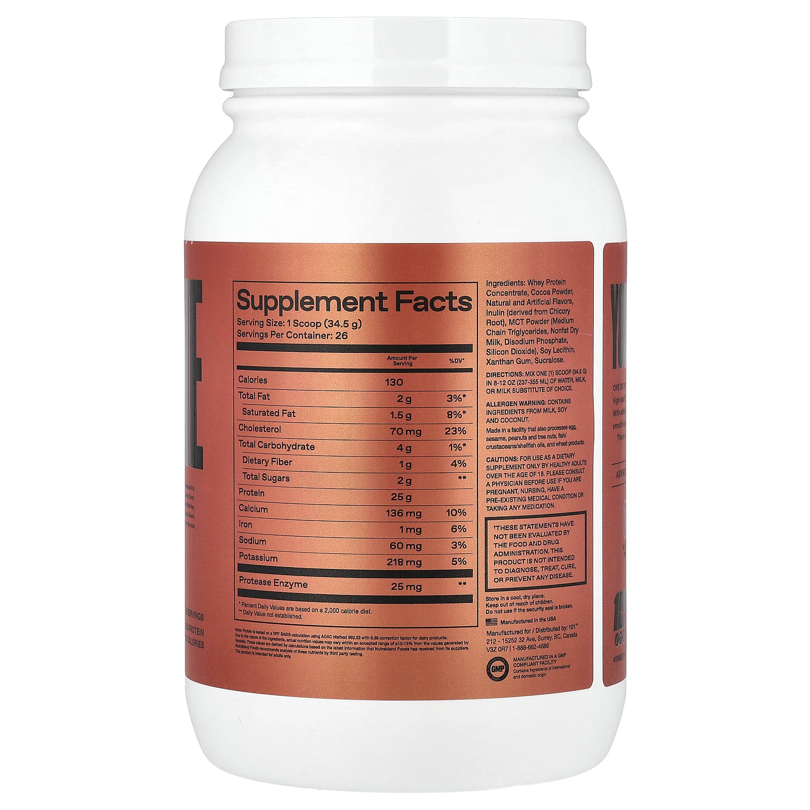 Whey protein concentrate, cocoa powder, natural and artificial flavors, inulin (derived from chicory root), mct powder (medium chain triglycerides, nonfat dry milk, disodium phosphate, silicon dioxide), soy lecithin, xanthan gum, sucralose.