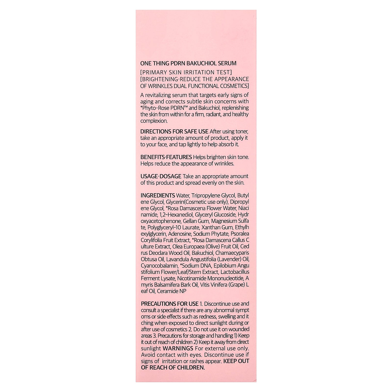 Benefits: Helps brighten skin tone. Helps reduce the appearance of wrinkles.