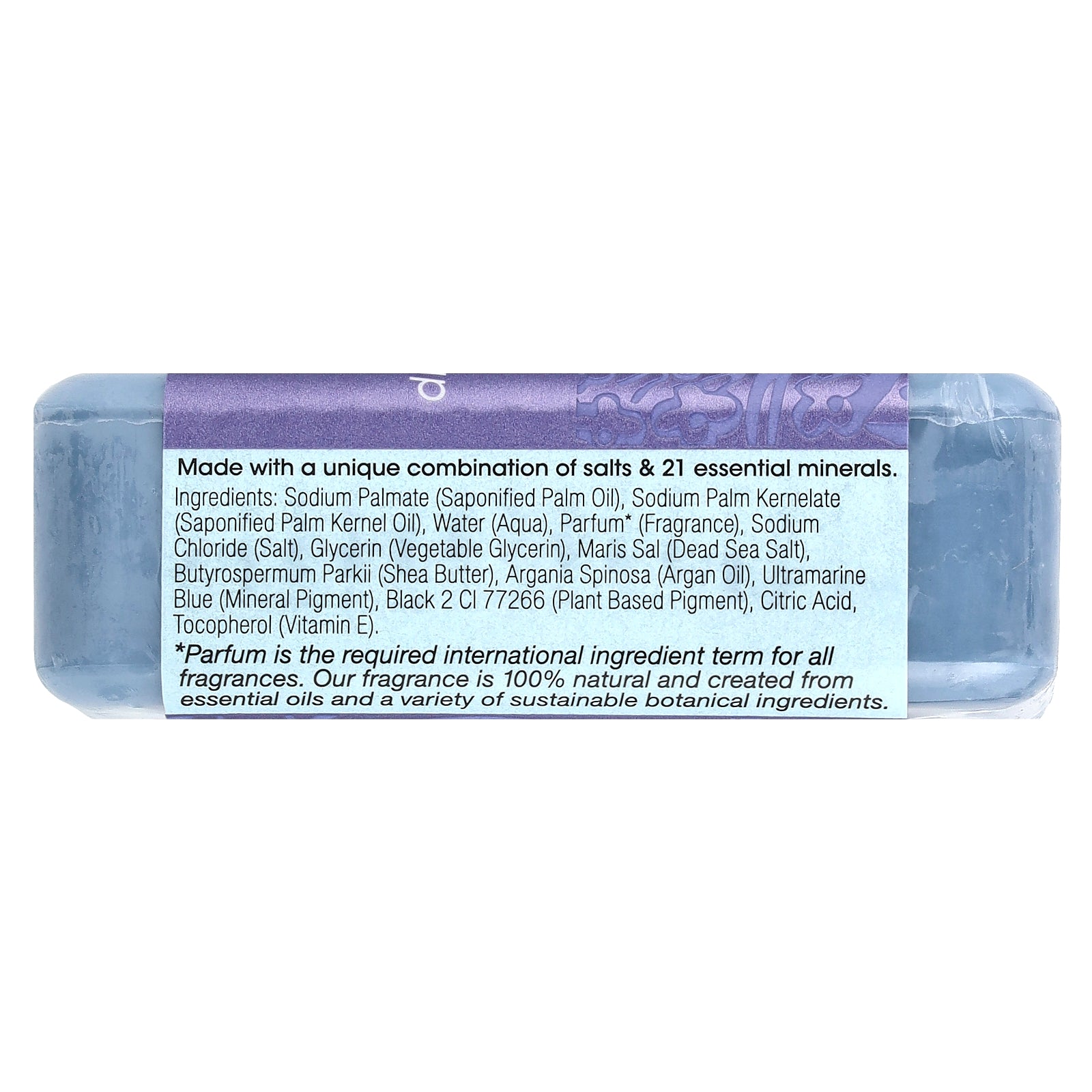 Sodium palmate (saponified palm oil), sodium palm kernelate (saponified palm kernel oil), water (aqua), parfum* (fragrance), sodium chloride (salt), glycerin (vegetable glycerin), maris sal (Dead Sea salt), butyrospermum parkii (shea butter), argania spinosa (argan oil), ultramarine blue (mineral pigment), black 2 ci 77266 (plant based pigment), citric acid, tocopherol (vitamin e).