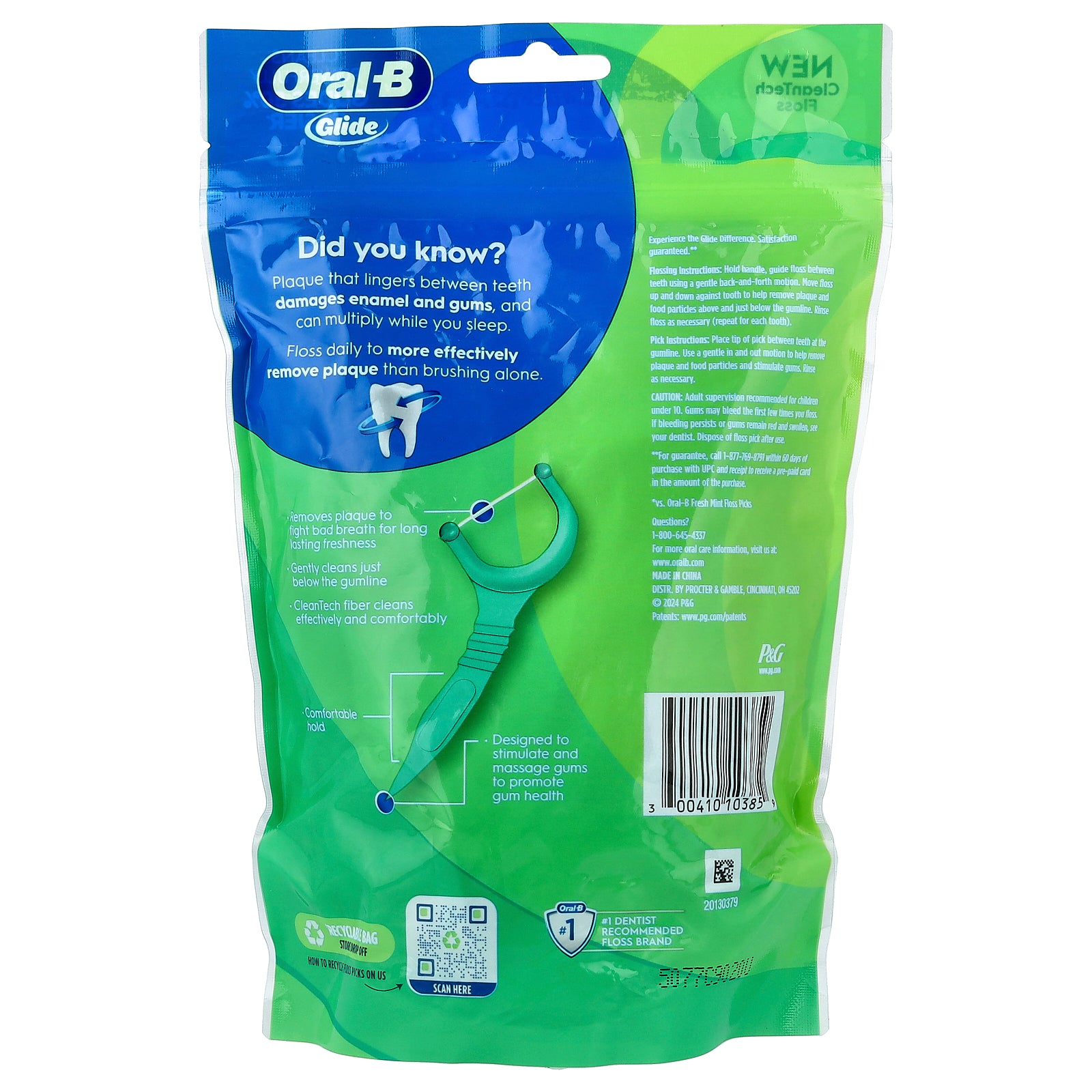 Adult supervision recommended for children under 10. Gums may bleed the first few times you floss. If bleeding persists or gums remain red and swollen, sce your dentist. Dispose of floss pick after use.