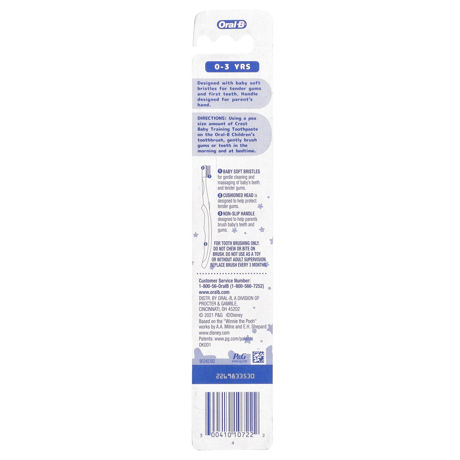 Using a pea size amount of Crest Baby Training Toothpaste on the Oral-B Children's toothbrush, gently brush gums or teeth in the morning and at bedtime.