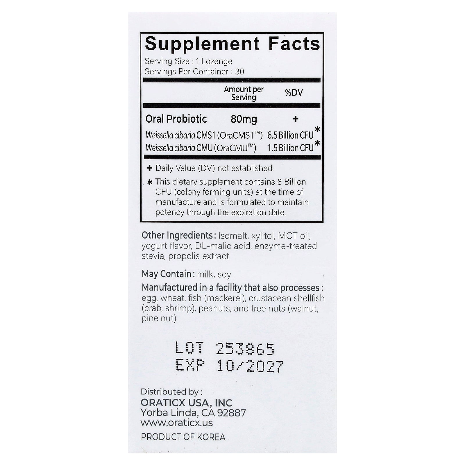 - 8 Billion CFU/Lozenge