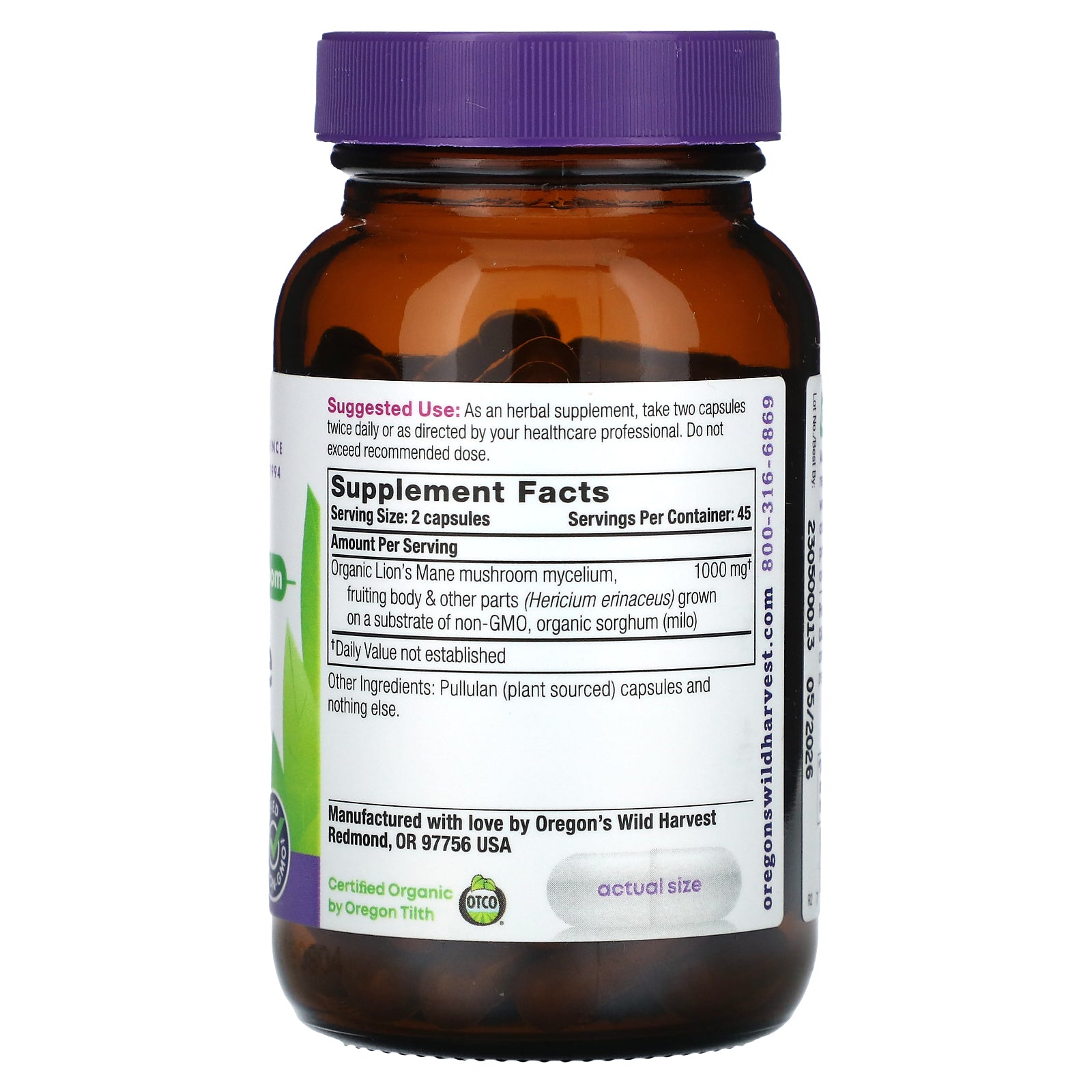 | Organic Lion's Mane Mushroom mycelium, fruiting body & other parts (Hericium erinaceus) grown on a substrate of non-GMO, organic sorghum (milo) | 1,000 mg | † |