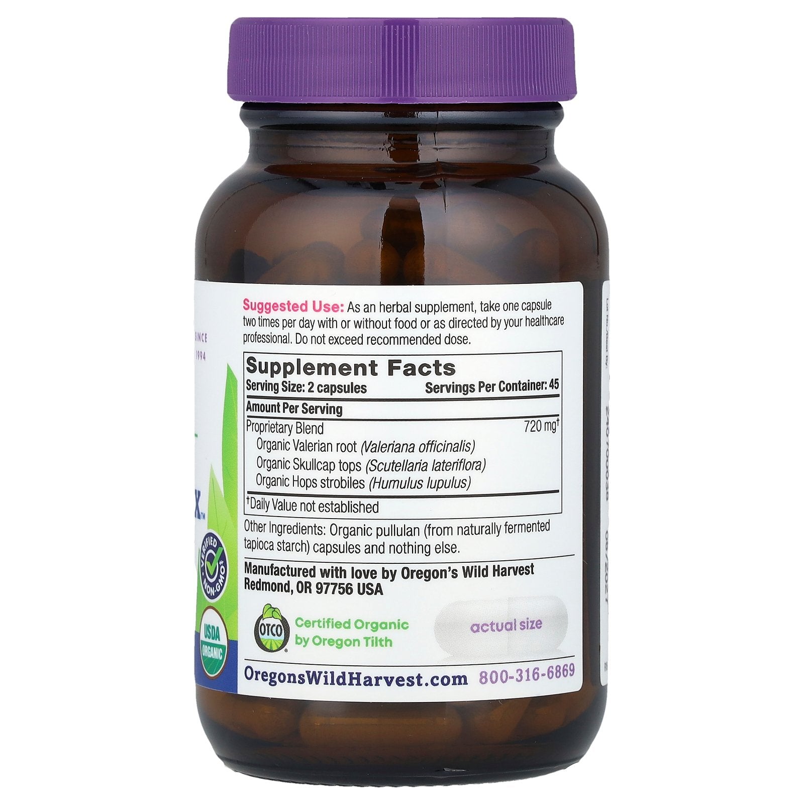 | Proprietary blend Organic Valerian root (Valeriana officinalis) Organic Skullcap tops (Scutellaria lateriflora) Organic Hops strobiles (Humulus lupulus) |