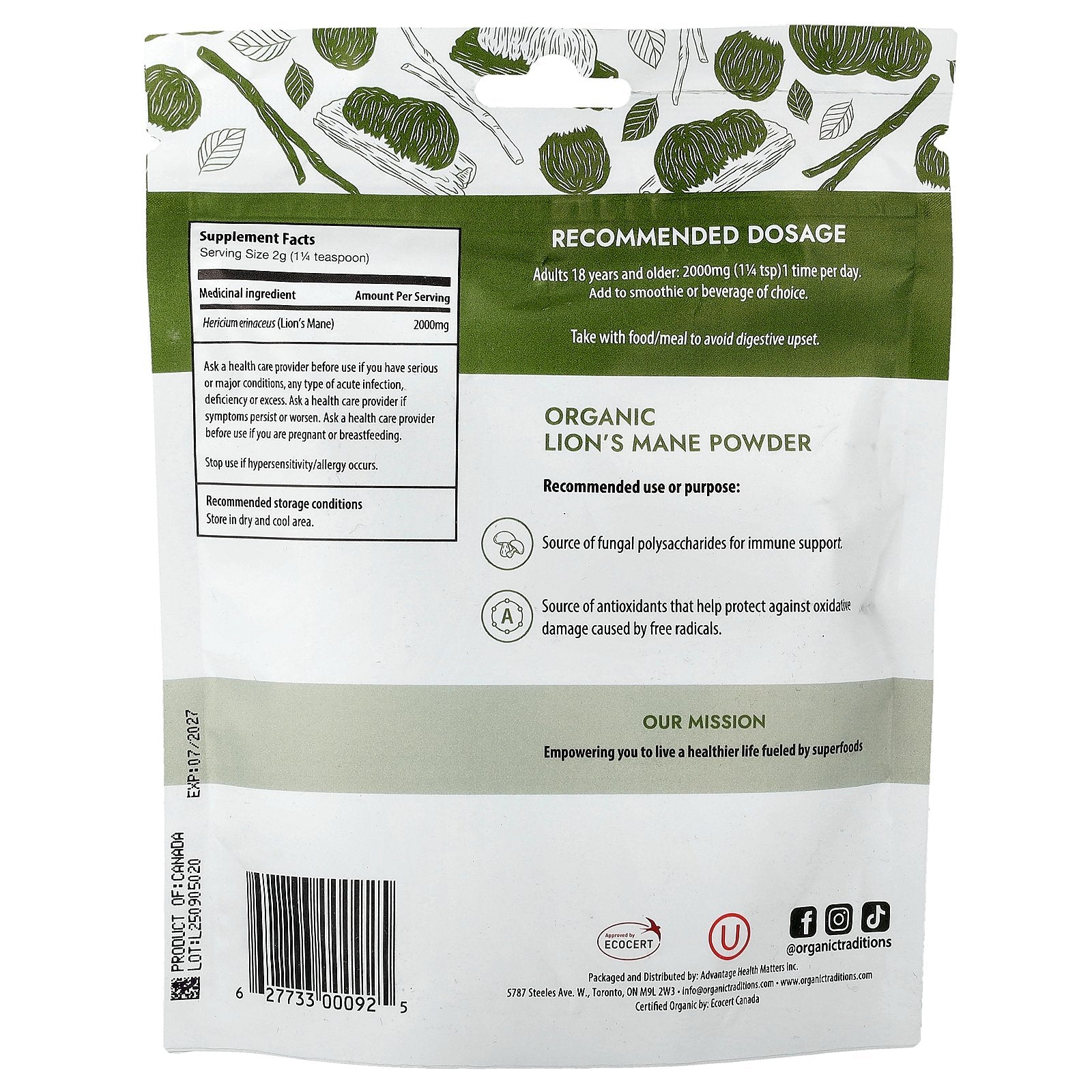- Certified Organic by: Ecocert Canada