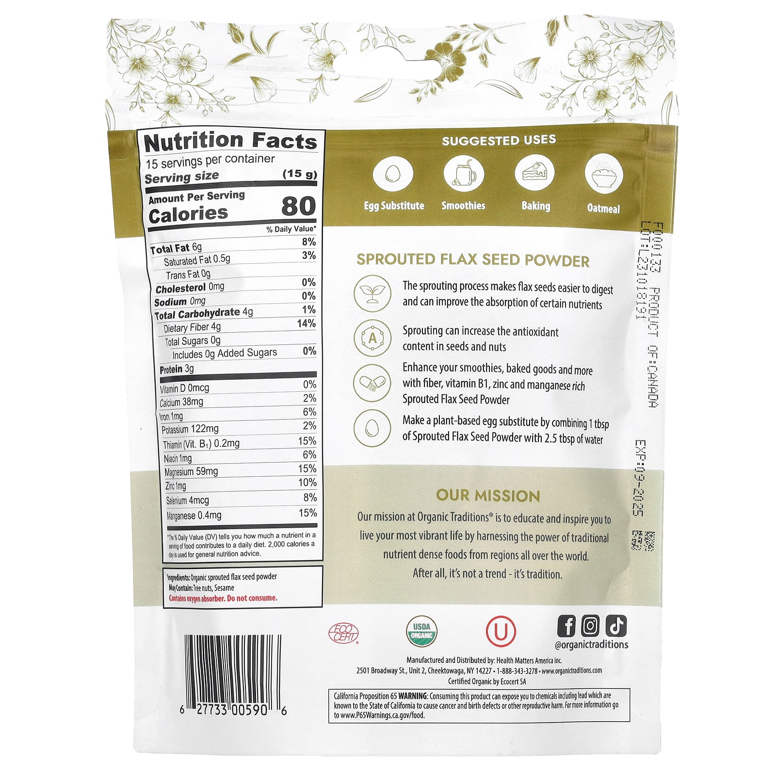 - Enhance your smoothies, baked goods and more with fiber, vitamin B1, zinc and manganese rich Sprouted Flax Seed Powder