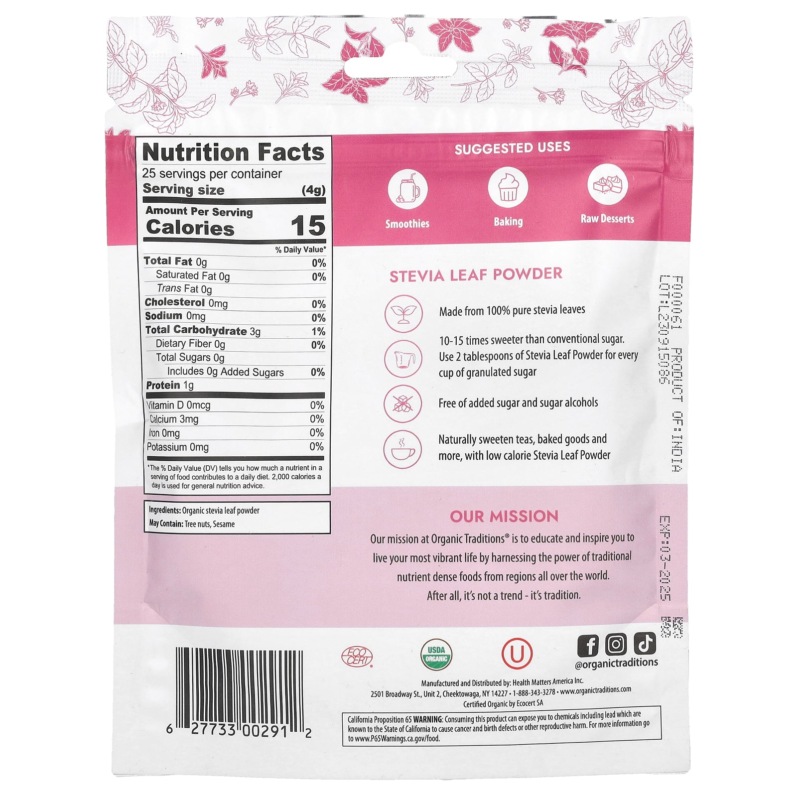 - Naturally sweeten teas, baked goods and more, with low calorie Stevia Leaf Powder