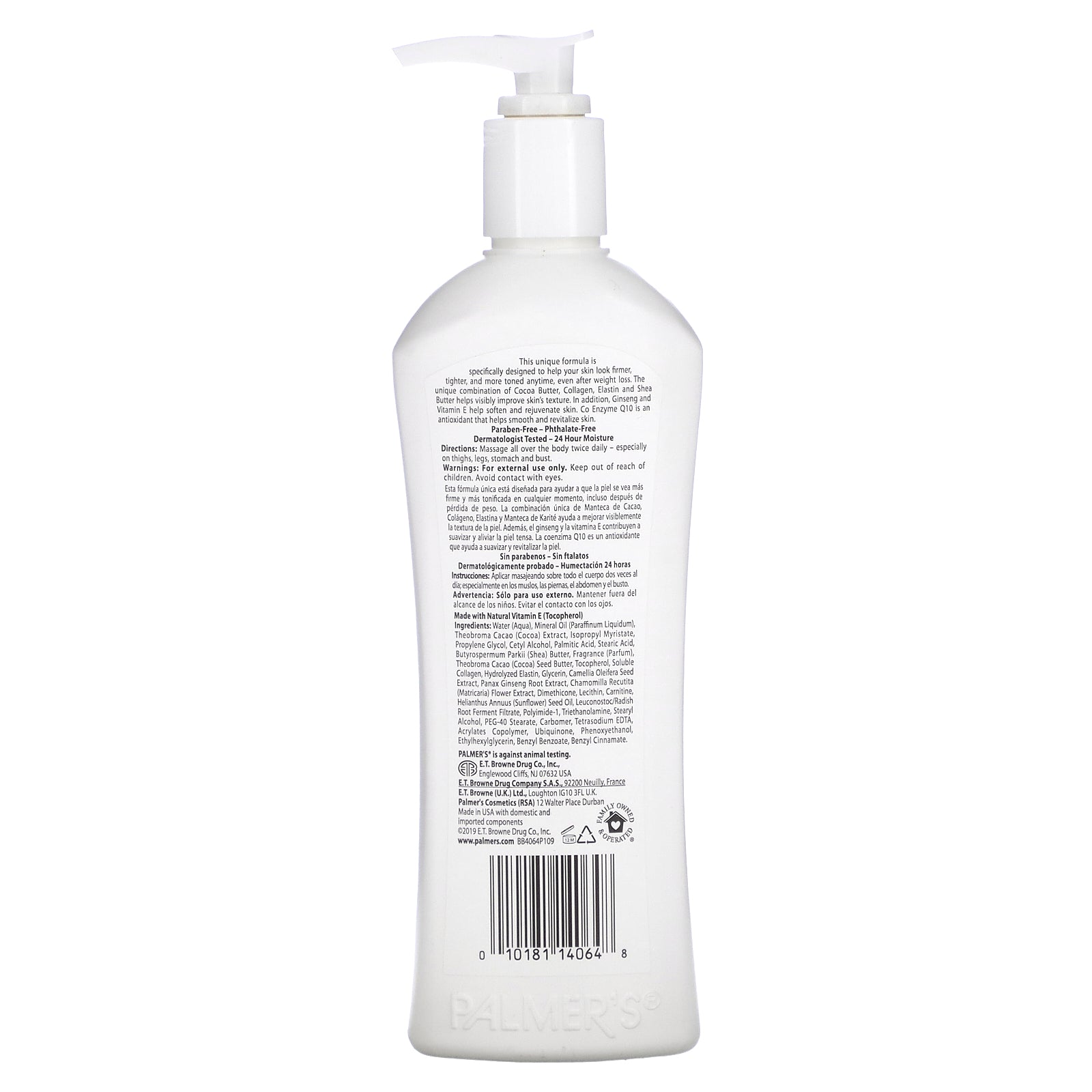 This unique formula is specifically designed to help your skin look firmer, tighter, and more toned anytime, even after weight loss. The unique combination of Cocoa Butter, Collagen, Elastin and Shea Butter helps visibly improve skin's texture. In addition, Ginseng and Vitamin E help soften and rejuvenate skin. Co Enzyme Q10 is an antioxidant that helps smooth and revitalize skin.