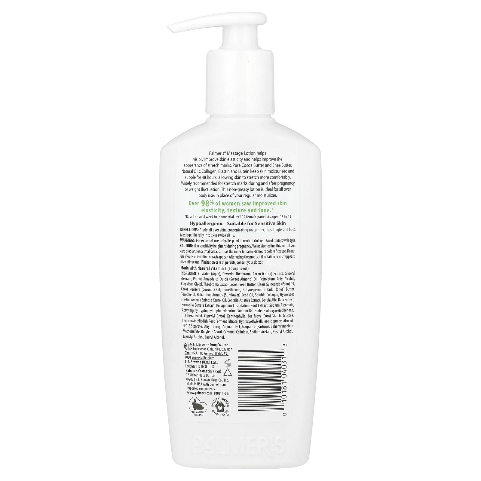 Palmers® Massage Lotion helps visibly improve skin elasticity and reduce the appearance of stretch marks. Pure Cocoa Butter and Shea Butter, Natural Oils, Collagen, Elastin and Lutein keep skin moisturized and supple for 48 hours allowing skin to stretch more easily. Widely recommended for stretch marks during and after pregnancy or weight fluctuation. This non-greasy lotion is ideal for all over body use, in place of your regular moisturizer.
