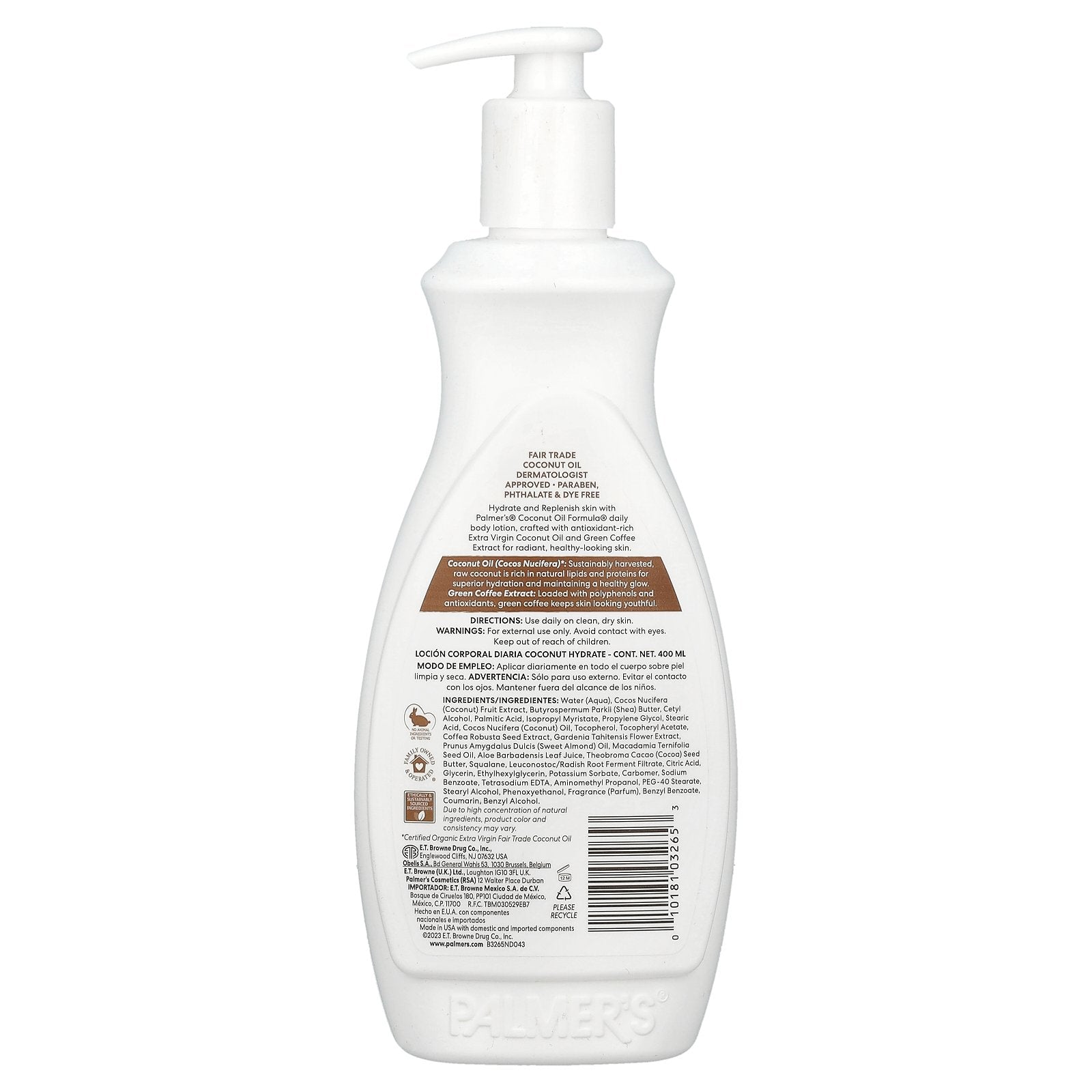 Hydrate and Replenish skin with Palmer's® Coconut Oil Formula® daily body lotion, crafted with antioxidant-rich Extra Virgin Coconut Oil and Green Coffee Extract for radiant, healthy-looking skin.