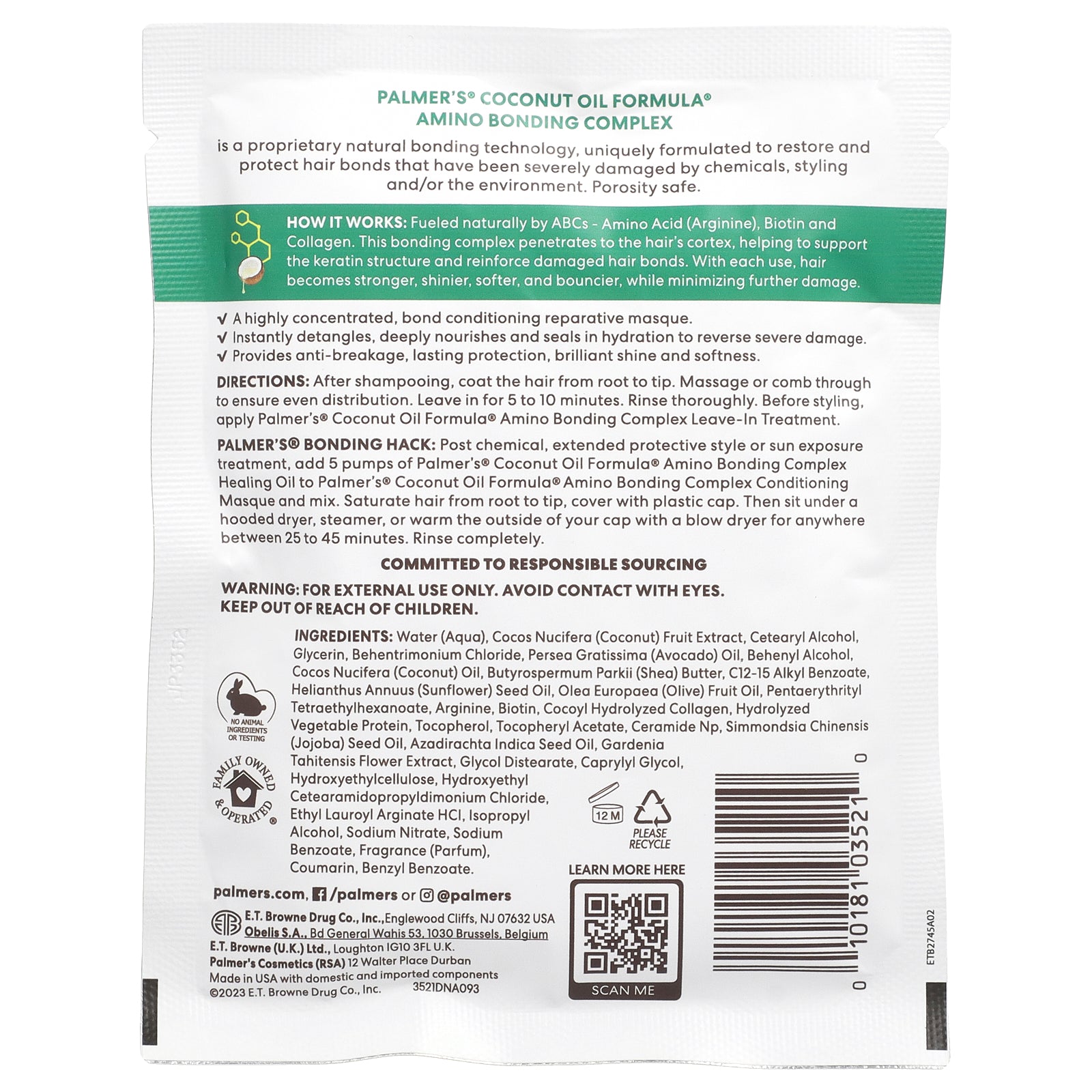 Palmer's® Coconut Oil Formula® Amino Bonding Complex is a proprietary natural bonding technology, uniquely formulated to restore and protect hair bonds that have been severely damaged by chemicals, styling and/or the environment. Porosity safe.