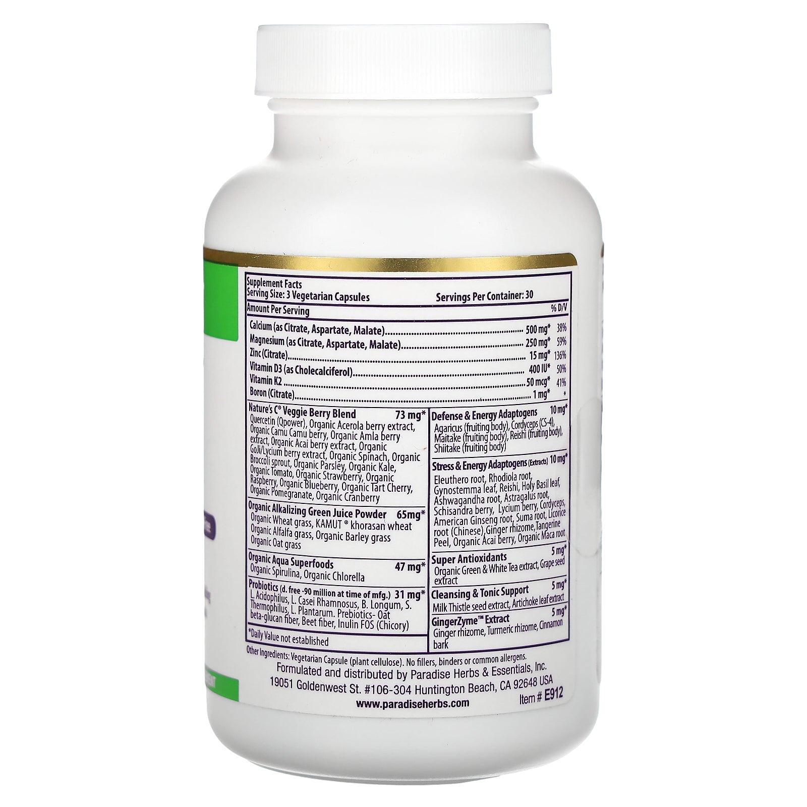 Paradise Earth's Blend® Calcium Magnesium Zinc + D3 is truly a Nature Synergized superfood. Our formula uses real whole-food goodness paired with Nature's C , probiotics and a gentle alkalizing greens blend to go beyond mere deficiencies and help support overall whole system health.