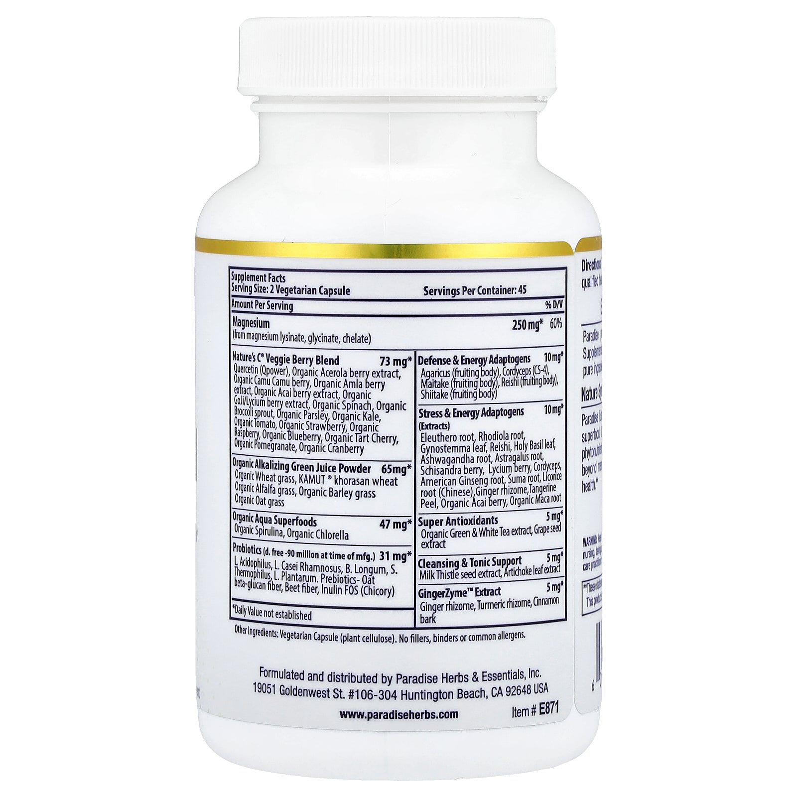 Paradise Earth's Blend® Magnesium is truly a Nature Synergized superfood. Our formula uses real whole-food goodness paired with phytonutrients, probiotics and a gentle alkalizing greens blend to go beyond mere deficiencies and help support overall whole system health.