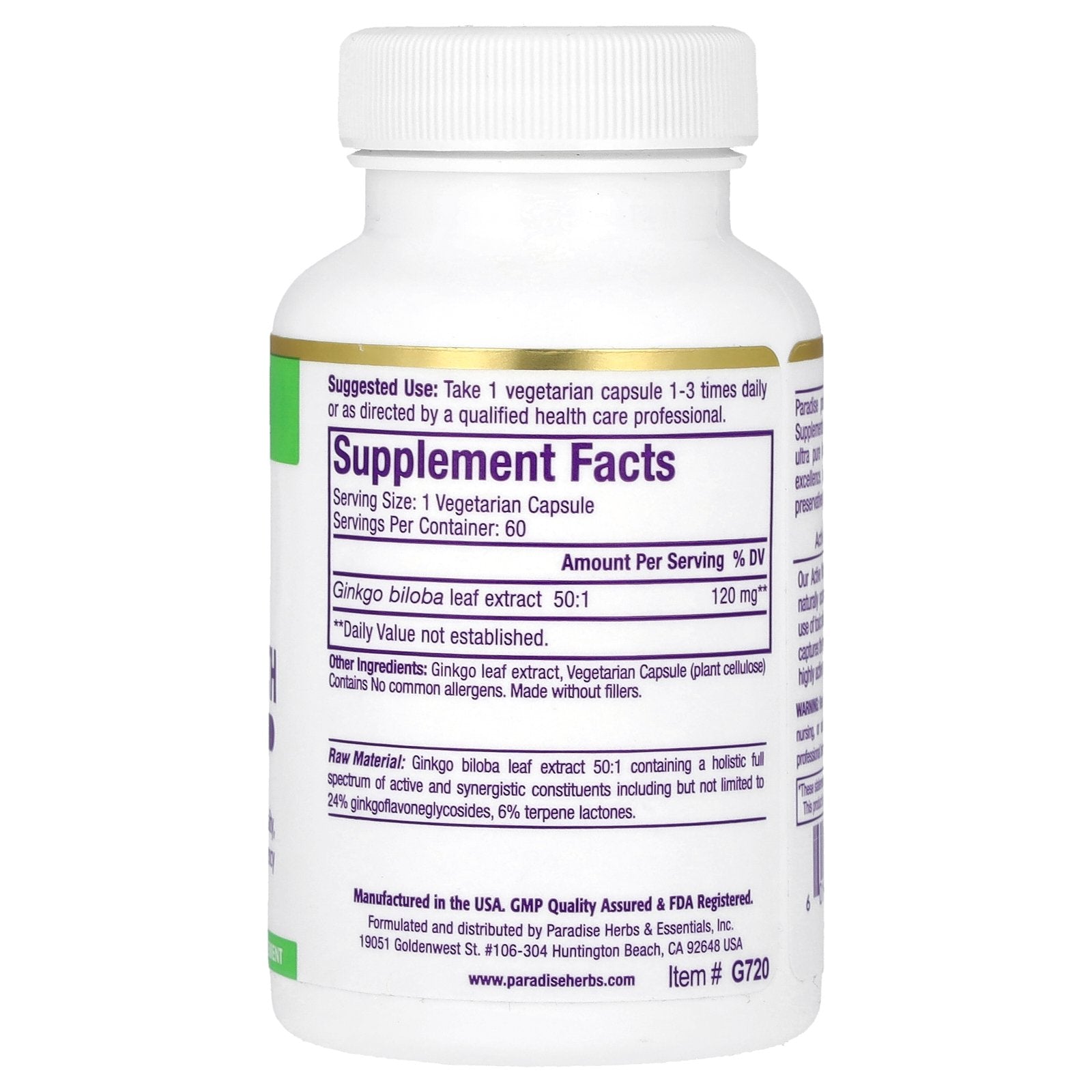 Raw Material: Ginkgo biloba leaf extract 50:1 containing a holistic full spectrum of active and synergistic constituents including but not limited to 24% ginkgoflavoneglycosides, 6% terpene lactones.