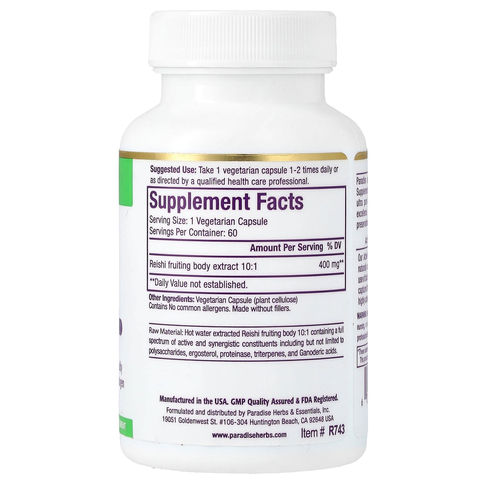 Raw Material: Hot water extracted Reishi fruiting body extract 10:1 containing a full spectrum of active and synergistic constituents including but not limited to polysaccharides, ergosterol, proteinase, triterpenes, and Ganoderic acids.