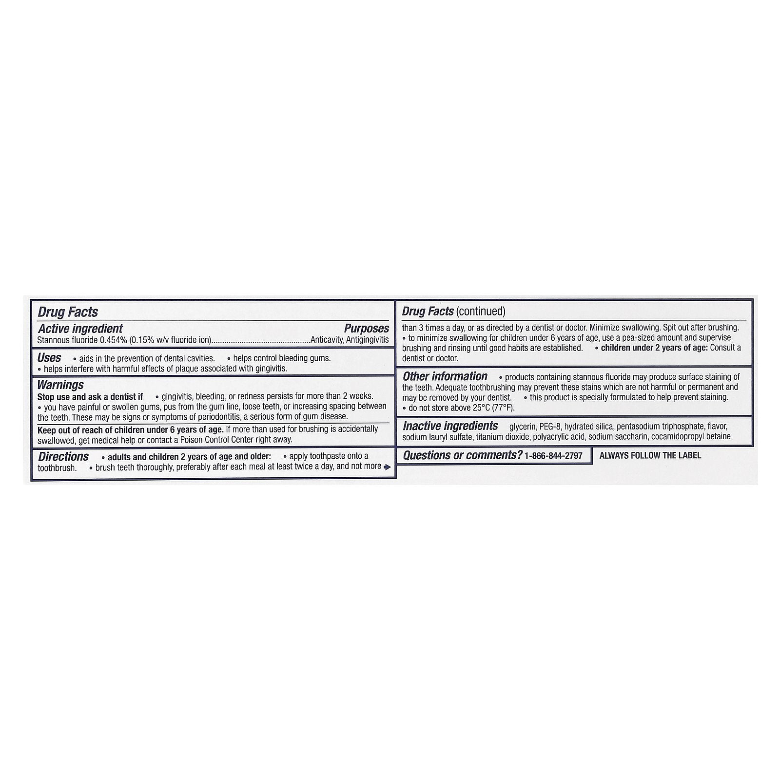 Inactive Ingredients: Glycerin, PEG-8, hydrated silica, pentasodium triphosphate, flavor, sodium lauryl sulfate, titanium dioxide, polyacrylic acid, sodium saccharin, cocamidopropyl betaine |