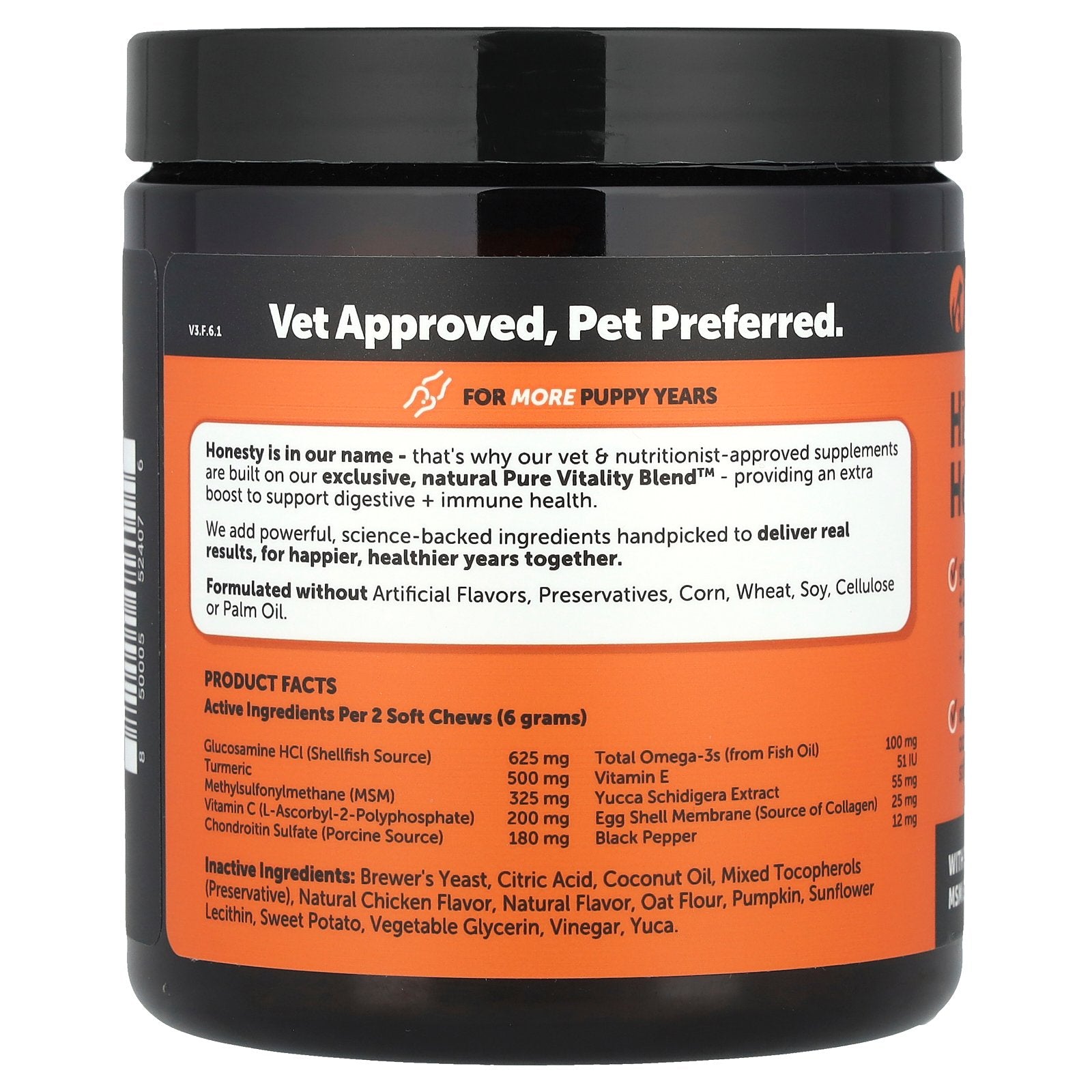 Honesty is in our name - that's why our vet & nutritionist-approved supplements are built on our exclusive, natural Pure Vitality Blend™ - providing an extra boost to support digestive + immune health. We add powerful, science-backed ingredients handpicked to deliver real results, for happier, healthier years together.
