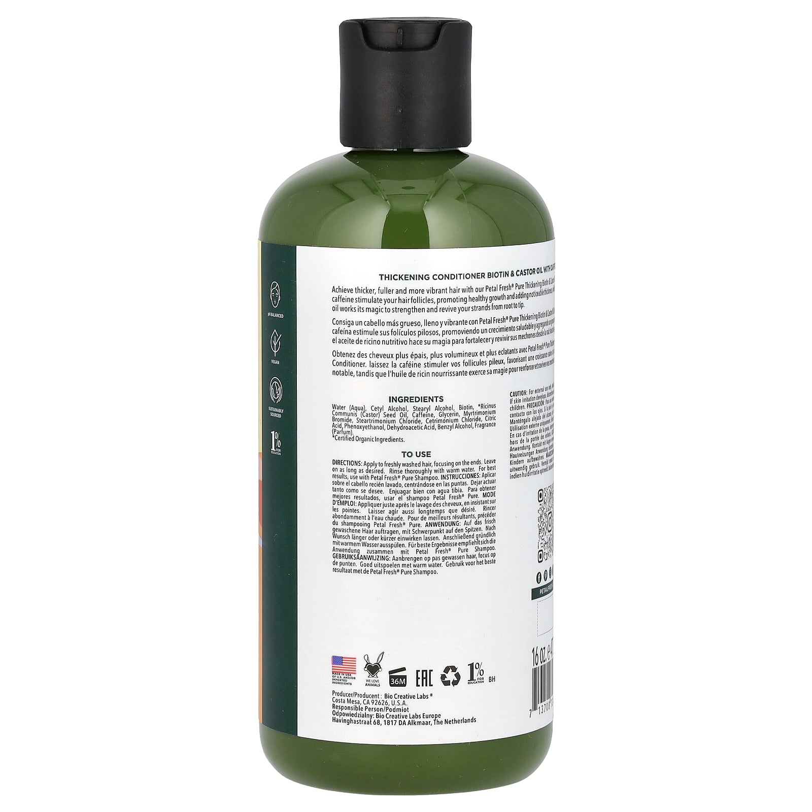 Achieve thicker, fuller and more vibrant hair with our Petal Fresh® Pure Thickening Biotin & Castor Oil Conditioner. Let the caffeine stimulate your hair follicles, promoting healthy growth and adding noticeable thickness, while the nourishing castor ol works its magic to strengthen and revive your strands from root to tip.