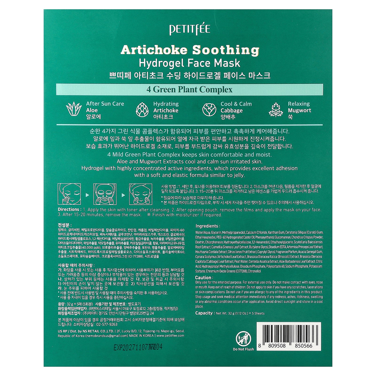 Aloe and Mugwort Extracts cool and calm sun irritated skin.
