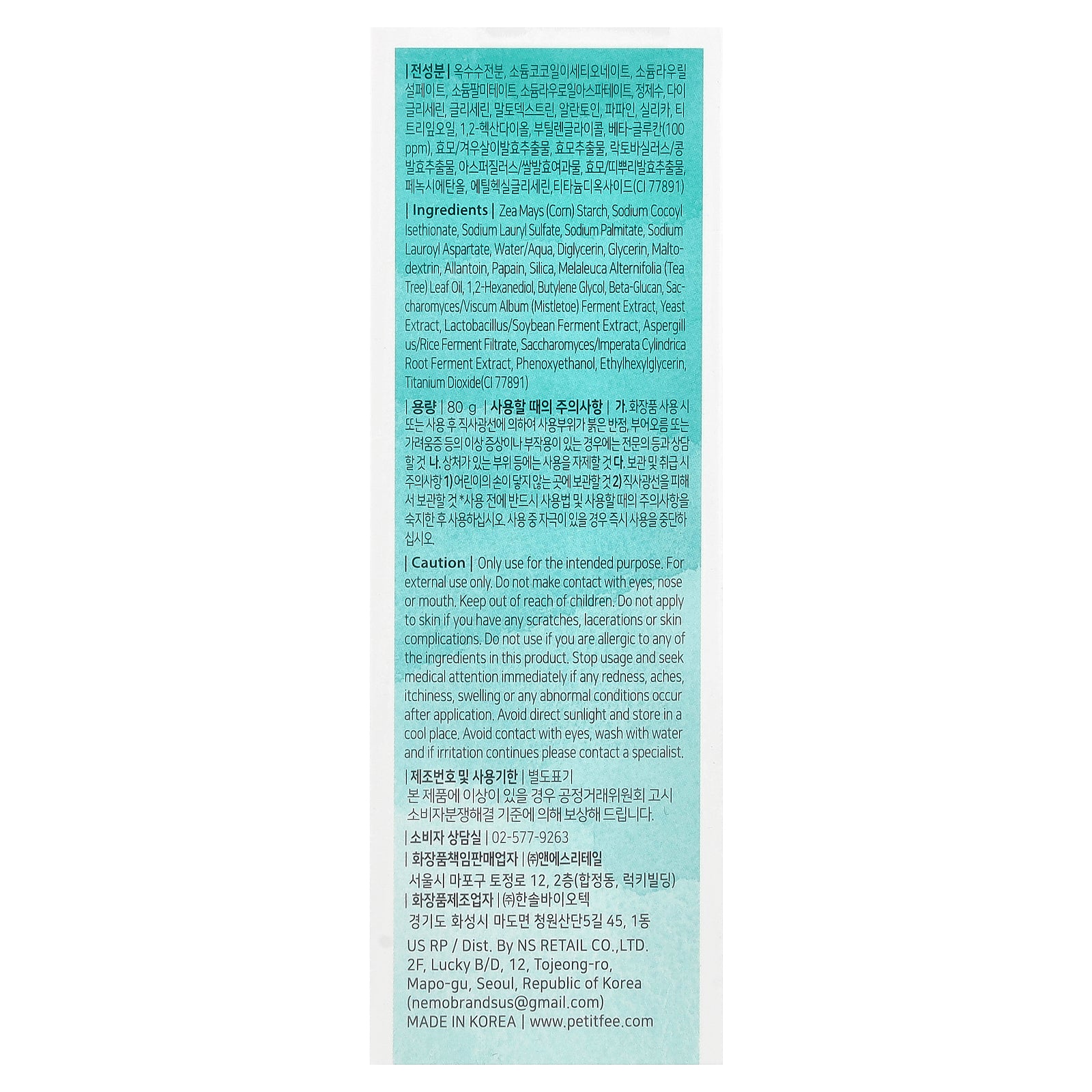 Zea mays (corn) starch, sodium cocoyllsethionate, sodium lauryl sulfate, sodium palmitate, sodium lauroyl aspartate, water/aqua, diglycerin, glycerin, maltodextrin, allantoin, papain, silica, melaleuca alternifolia (tea tree) leaf oil, 1,2-hexanediol, butylene glycol, beta-glucan, saccharomyces/viscum album (mistletoe) ferment extract, yeast extract, lactobacillus/soybean ferment extract, aspergillus/rice ferment filtrate, saccharomyces/imperata cylindrica root ferment extract, phenoxyethanol, ethylhexylglycerin, titanium dioxide (ci 77891).