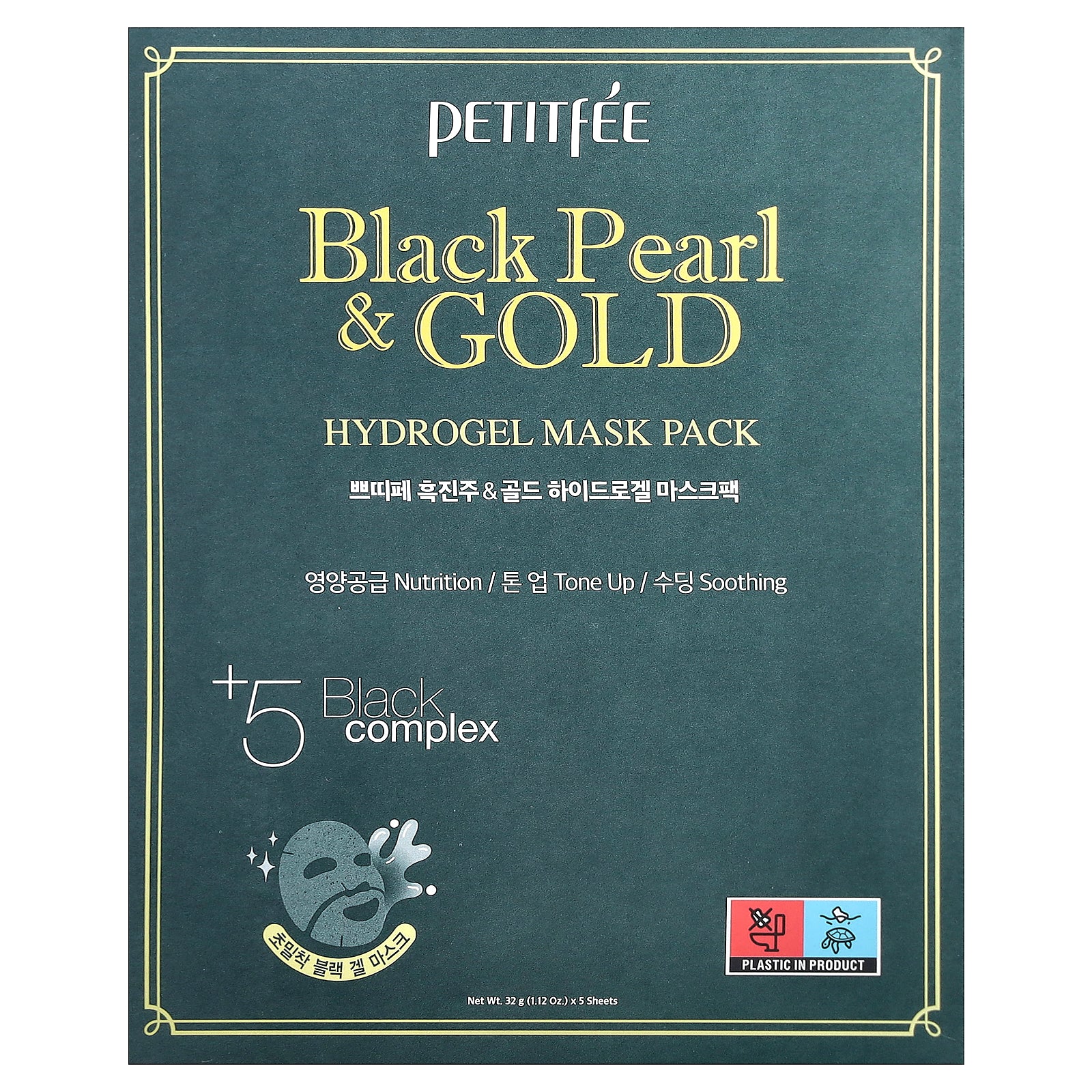 5 nutritional ingredients (Black Pearl, Gold, B-Glucan, Peat Water, Fucoidan-v) in the Black Gel Mask strengthens and brightens weak skin.