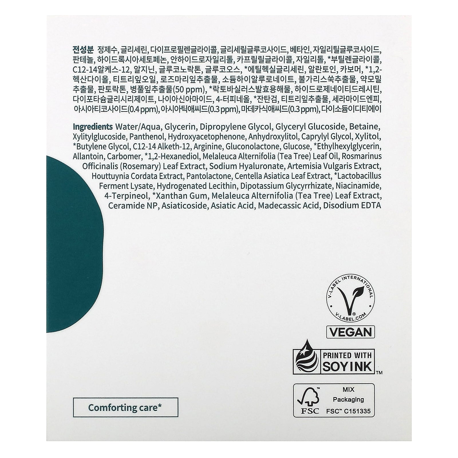 Water/aqua, glycerin, dipropylene glycol, glyceryl glucoside, betaine, xylitylglucoside, panthenol, hydroxyacetophenone, anhydroxylitol, caprylyl glycol, xylitol, *butylene glycol, c12-14 alketh-12, arginine, gluconolactone, glucose,* ethylhexylglycerin, allantoin, carbomer,* 1,2-hexanediol, melaleuca alternifolia (tea tree) leaf oil, rosmarinus officinalis (rosemary) leaf extract, sodium hyaluronate, artemisia vulgaris extract, houttuynia cordata extract, pantolactone, centella asiatica leaf extract,* lactobacillus ferment lysate, hydrogenated lecithin, dipotassium glycyrrhizate, niacinamide, 4-terpineol, *xanthan gum, melaleuca alternifolia (tea tree) leaf extract, ceramide np, asiaticoside, asiatic acid, madecassic acid, disodium edta.
