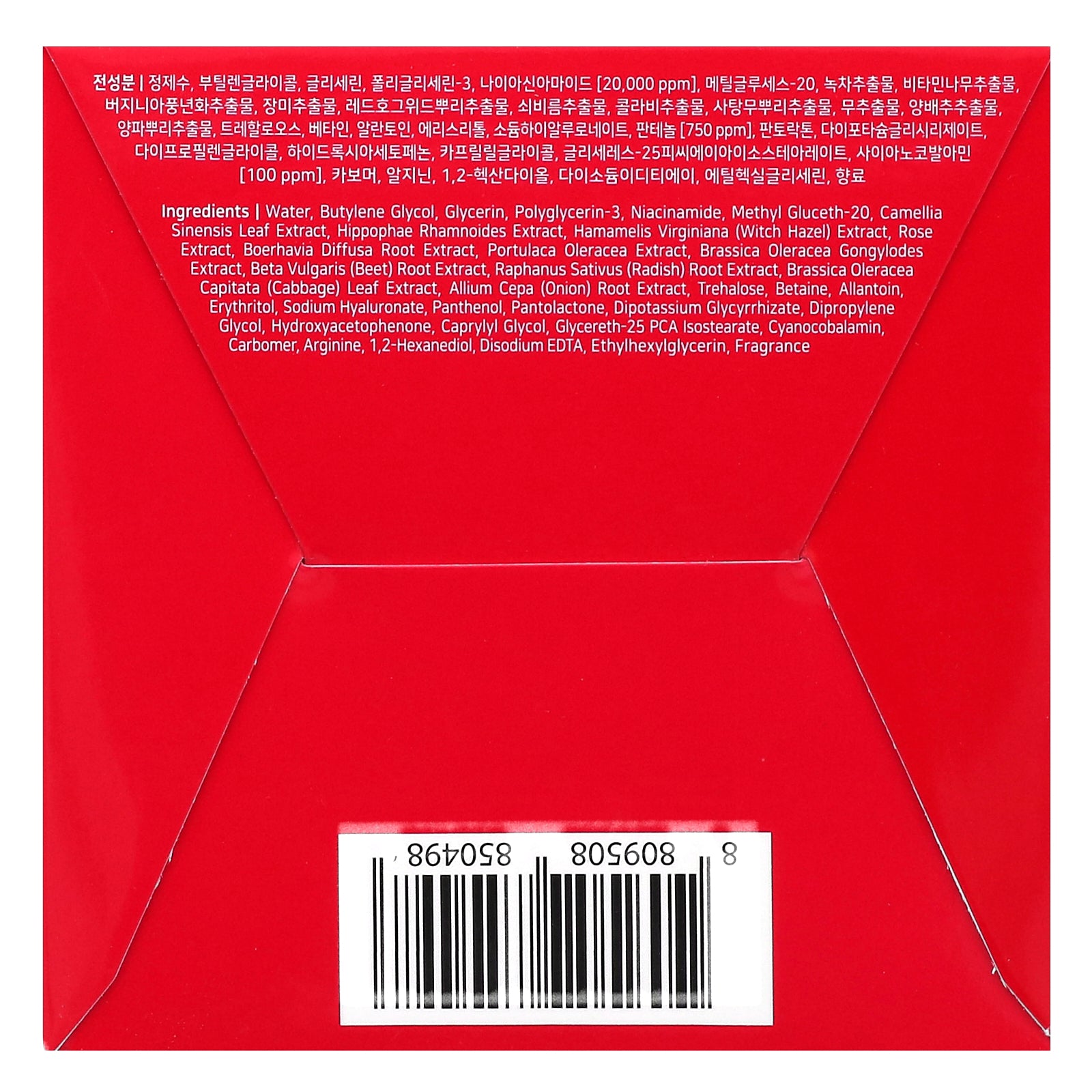 Water, butylene glycol, glycerin, polyglycerin-3, niacinamide, methyl gluceth-20, camellia sinensis leaf extract, hippophae rhamnoides extract, hamamelis virginiana (witch hazel) extract, rose extract, boerhavia diffusa root extract, portulaca oleracea extract, brassica oleracea gongylodes extract, beta vulgaris (beet) root extract, raphanus sativus (radish) root extract, brassica oleracea capitata (cabbage) leaf extract, allium cepa (onion) root extract, trehalose, betaine, allantoin, erythritol, sodium hyaluronate, panthenol, pantolactone, dipotassium glycyrrhizate, dipropylene glycol, hydroxyacetophenone, caprylyl glycol, glycereth-25 pca isostearate, cyanocobalamin, carbomer, arginine, 1,2-hexanediol, disodium edta, ethylhexylglycerin, fragrance.Suggested Use