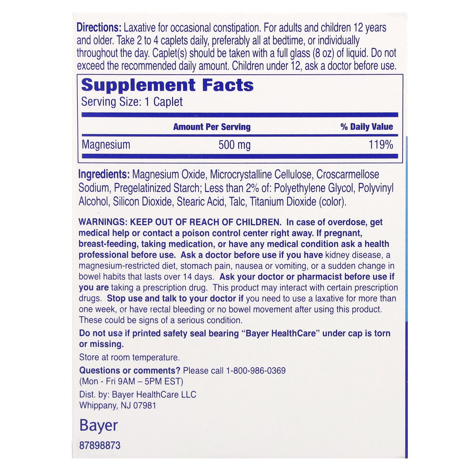 Keep out of reach of children. In case of overdose, get medical help or contact a poison control center right away. If pregnant, breast-feeding, taking medication, or have any medical condition ask a health professional before use. Ask a doctor before use if you have kidney disease, a magnesium-restricted diet, stomach pain, nausea or vomiting, or a sudden change in bowel habits that lasts over 14 days. Ask your doctor or pharmacist before use if you are taking a prescription drug. This product may interact with certain prescription drugs. Stop use and talk to your doctor if you need to use a laxative for more than one week, or have rectal bleeding or no bowel movement after using this product. These could be signs of a serious condition.