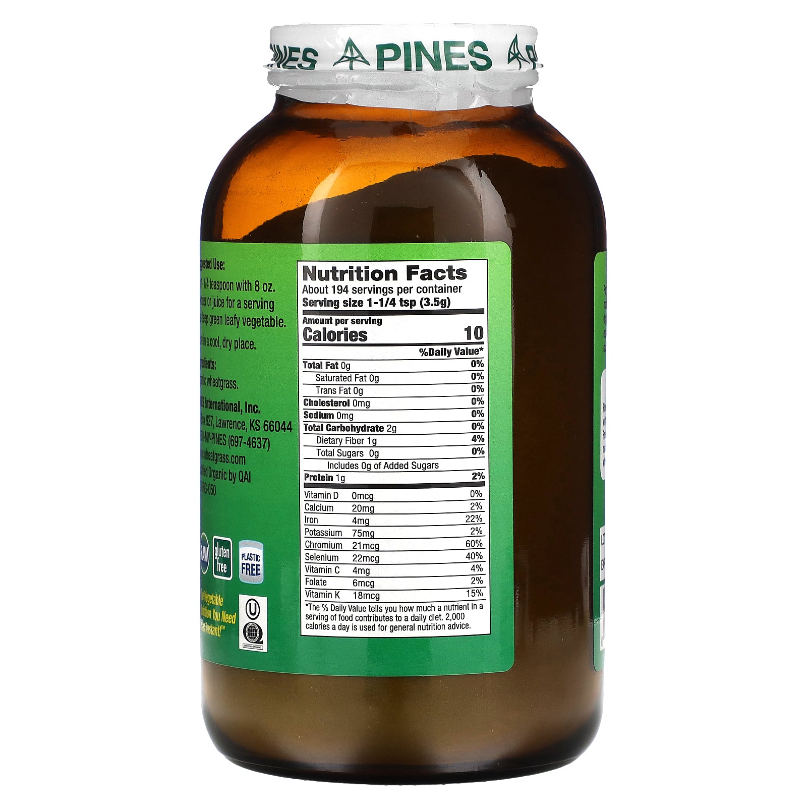 Pines Organic Wheat Grass is grown only in glacial soils without irrigation. It matures slowly during cold months. Freezing nighttime temperatures and cold days convert months of full sunlight into the most nutrient dense wheatgrass.