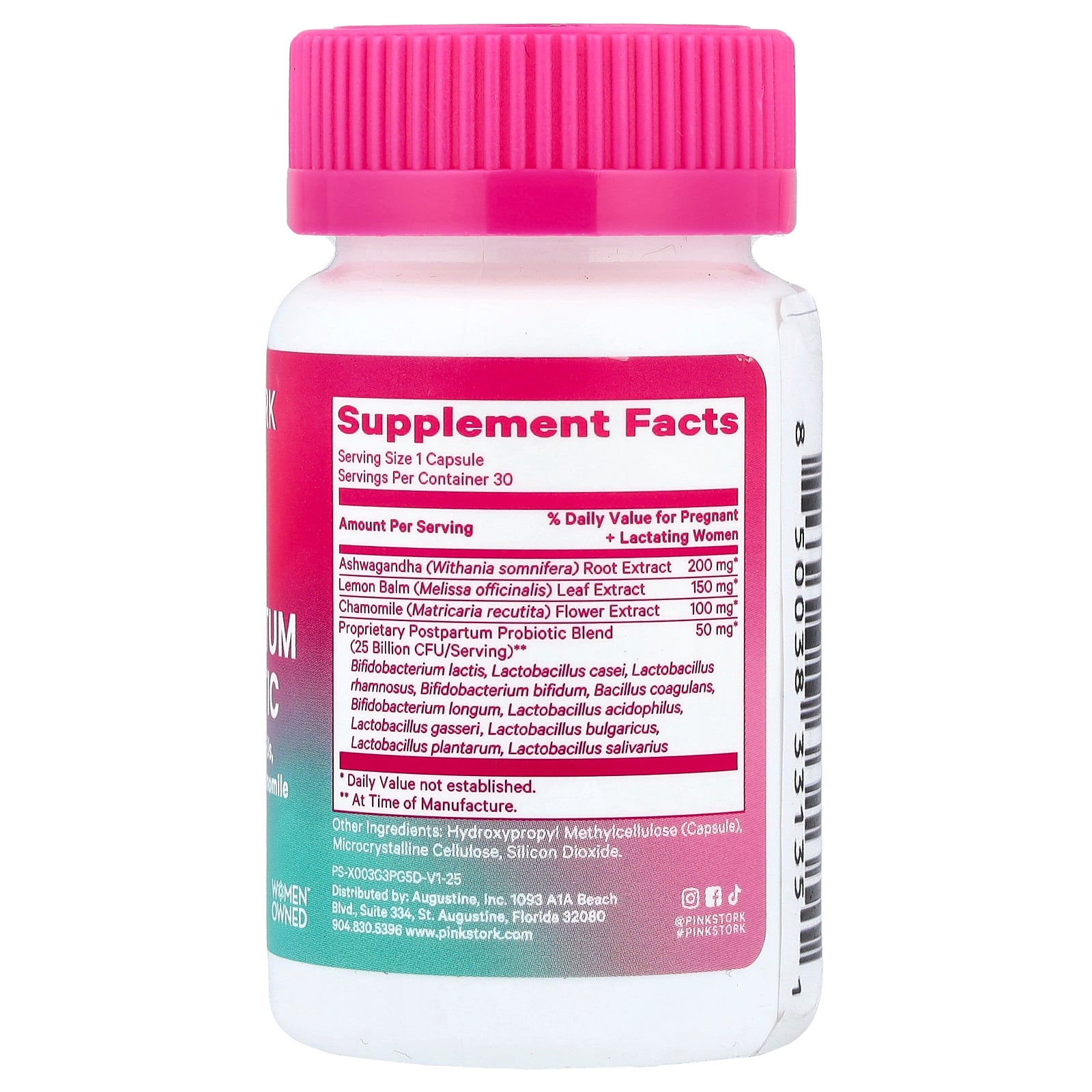 | Proprietary Postpartum Probiotic Blend (25 Billion CFU/Serving)** Bifidobacterium lactis, Lactobacillus casei, Lactobacillus rhamnosus, Bifidobacterium bifidum, Bacillus coagulans, Bifidobacterium longum, Lactobacillus acidophilus, Lactobacillus gasseri, Lactobacillus bulgaricus, Lactobacillus plantarum, Lactobacillus salivarius |