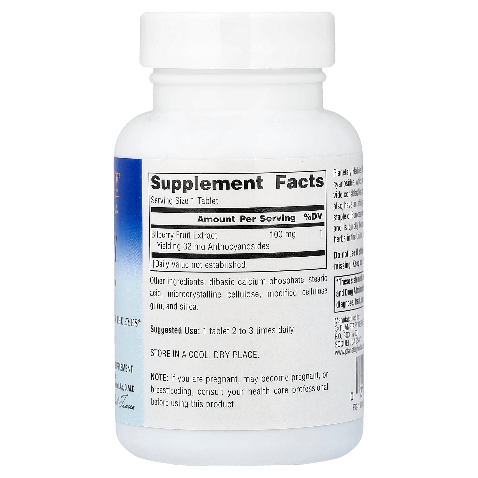 Planetary Herbals, Bilberry Vision™, 100 mg, 120 Tablets